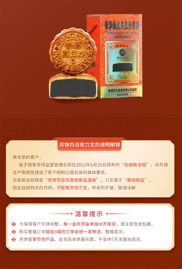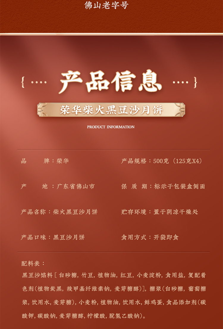 荣华月饼 柴火黑豆沙月饼500克 中秋月饼礼盒 广式月饼 中秋节送礼礼品 员工月饼 商品图8