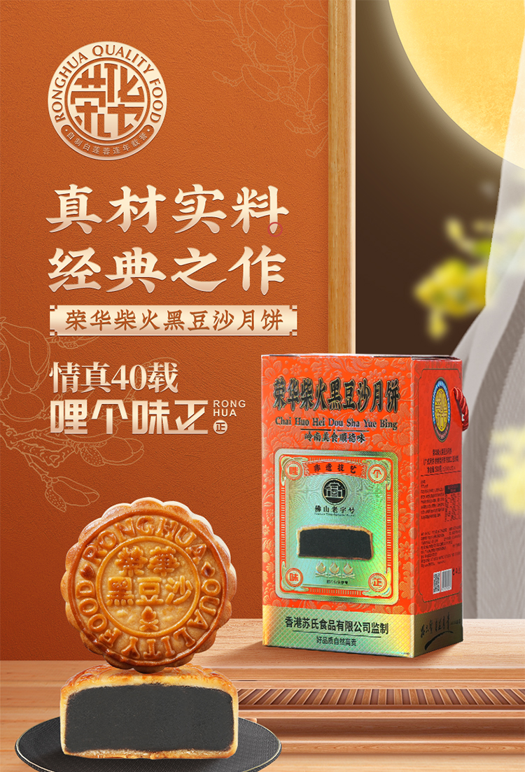 荣华月饼 柴火黑豆沙月饼500克 中秋月饼礼盒 广式月饼 中秋节送礼礼品 员工月饼 商品图7
