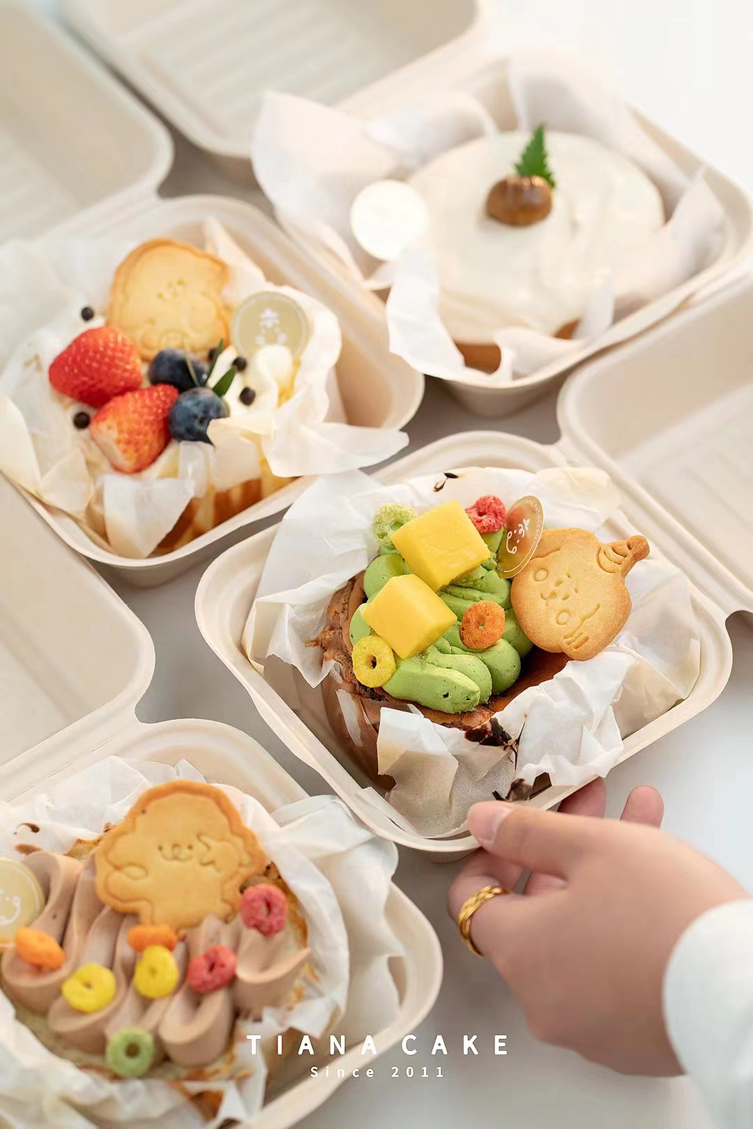 各种口味的芝士蛋糕和爆浆栗子蛋糕装入便当盒