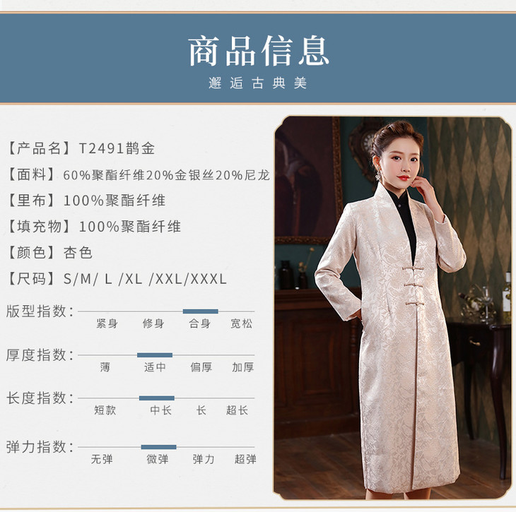 XGT-T2491修身舒适软提花中国风夹棉旗袍外套