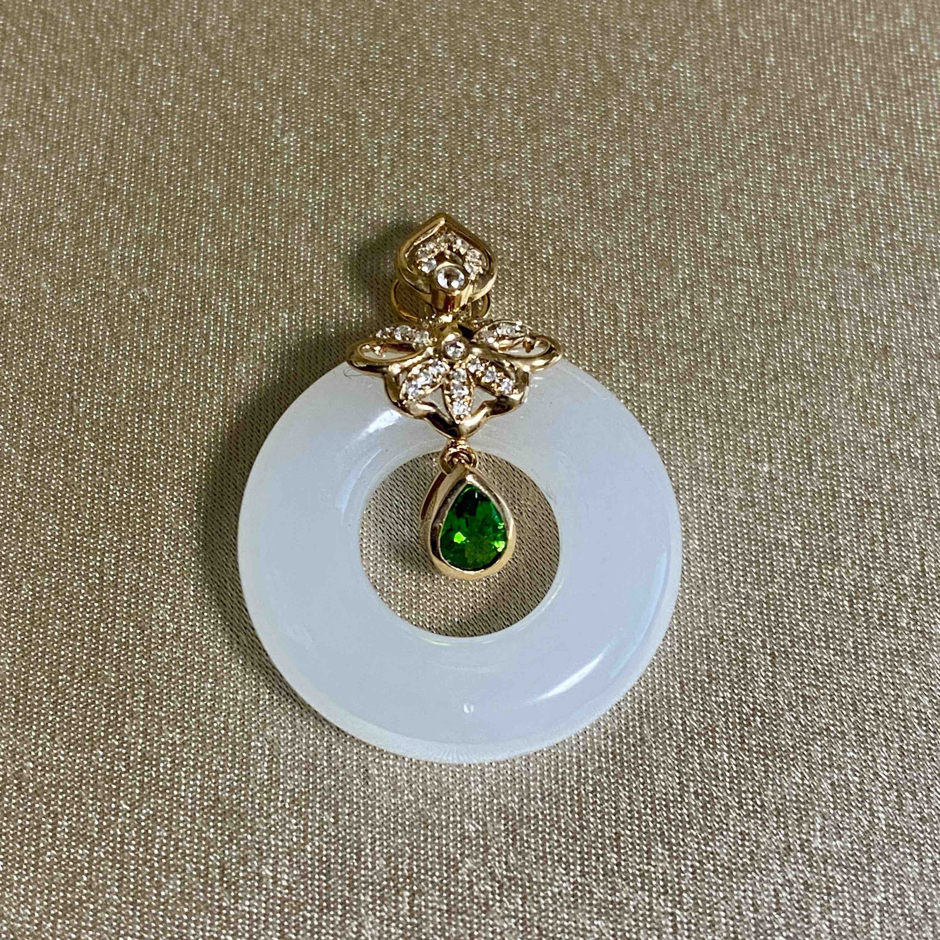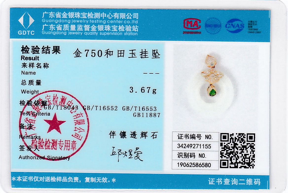 18k玫瑰金和田玉(白玉)吊坠