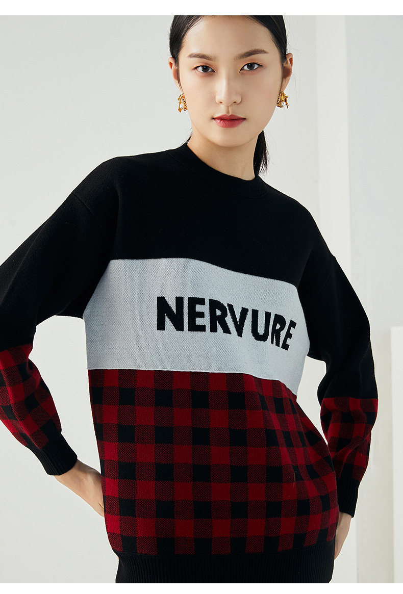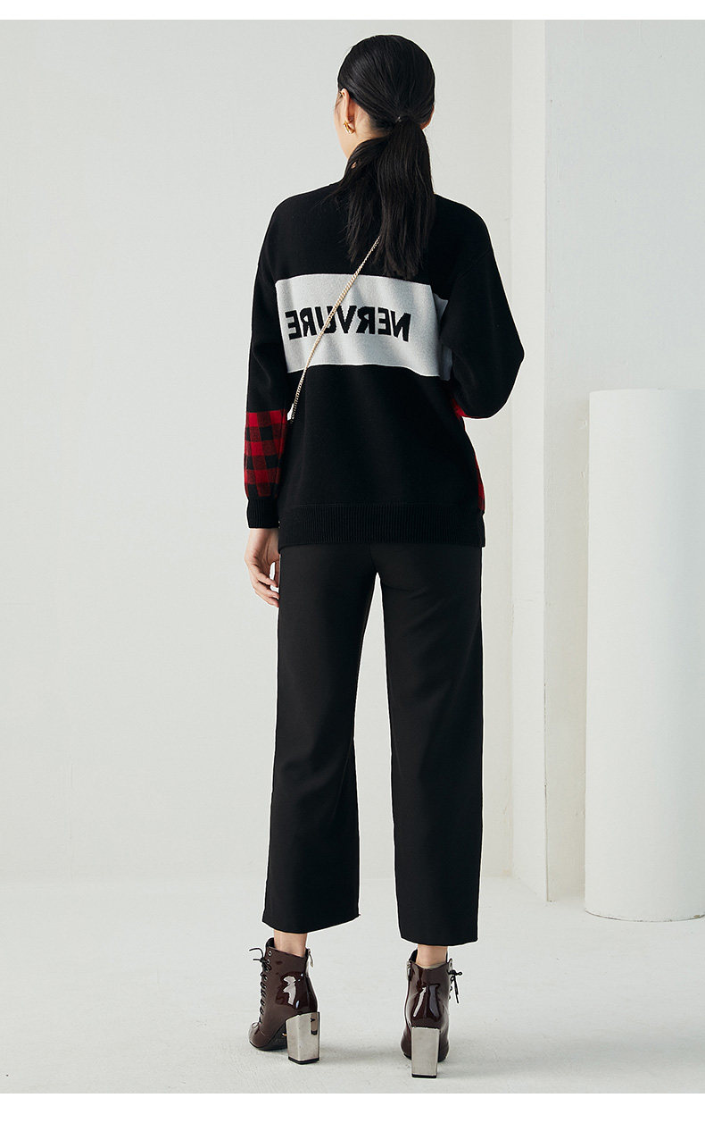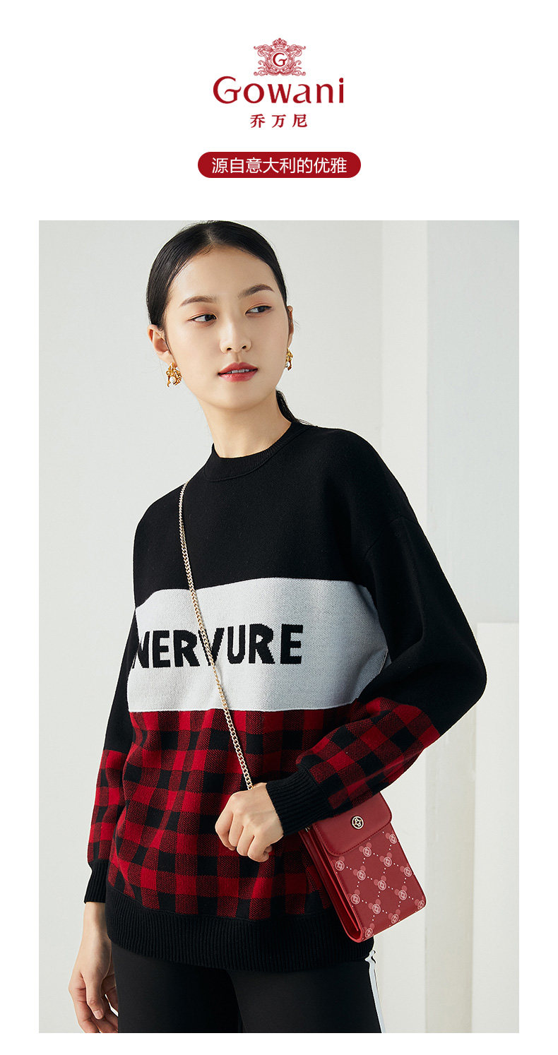 乔万尼秋冬新款中长款羊毛圆领套头个性字母图案飒爽时尚毛衫ES4M385