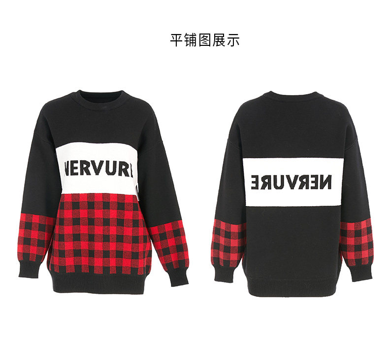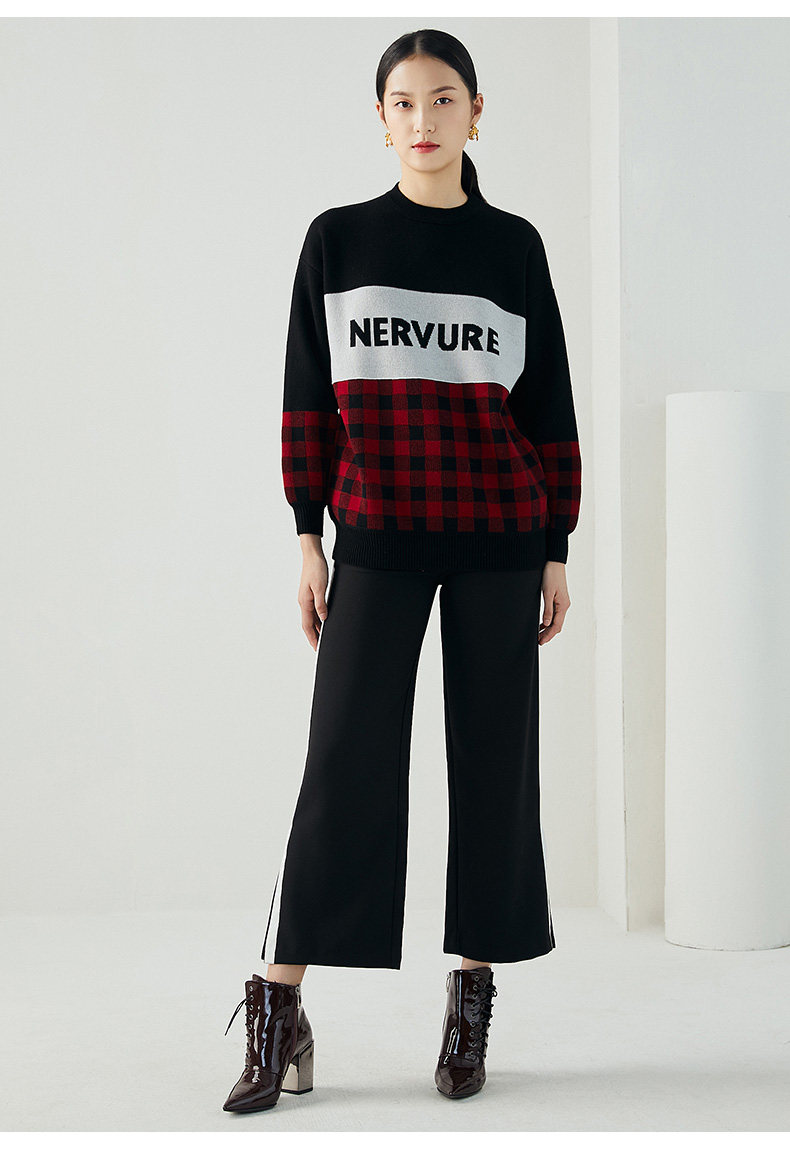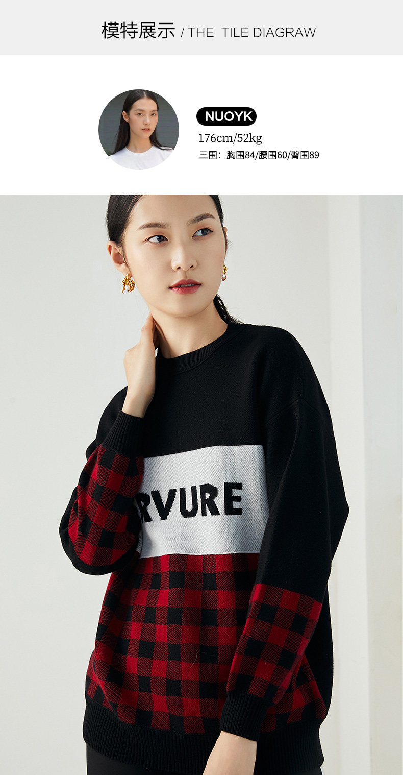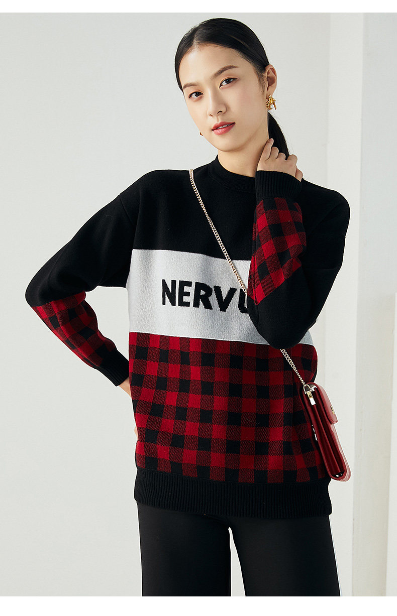 乔万尼秋冬新款中长款羊毛圆领套头个性字母图案飒爽时尚毛衫ES4M385