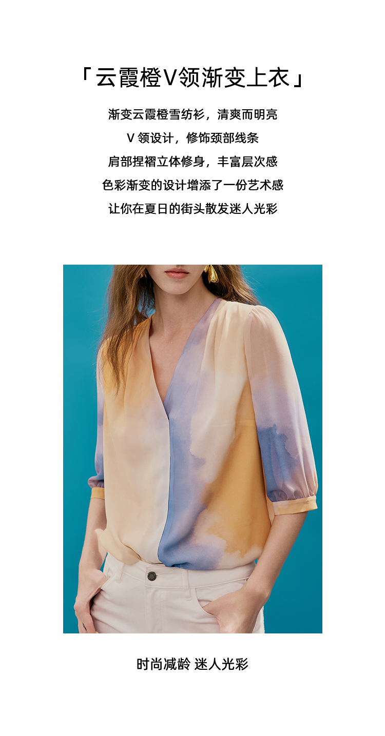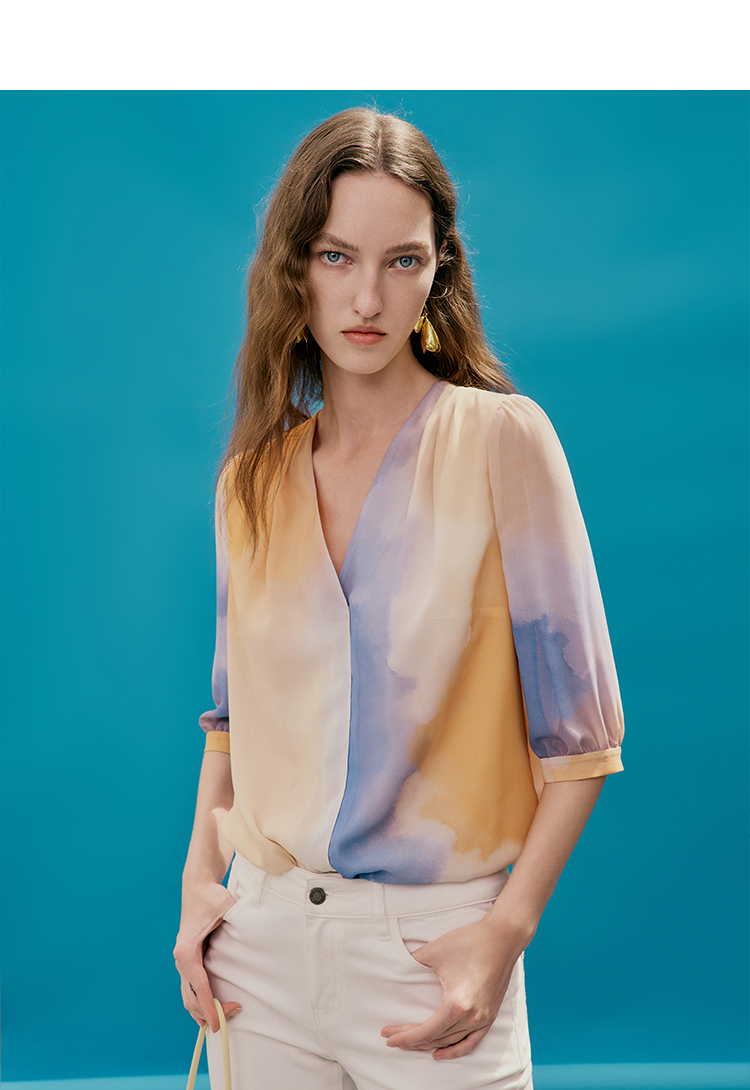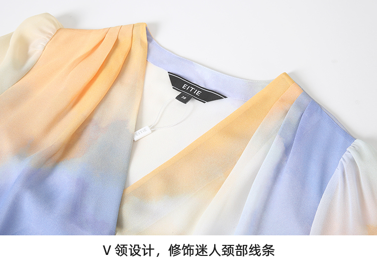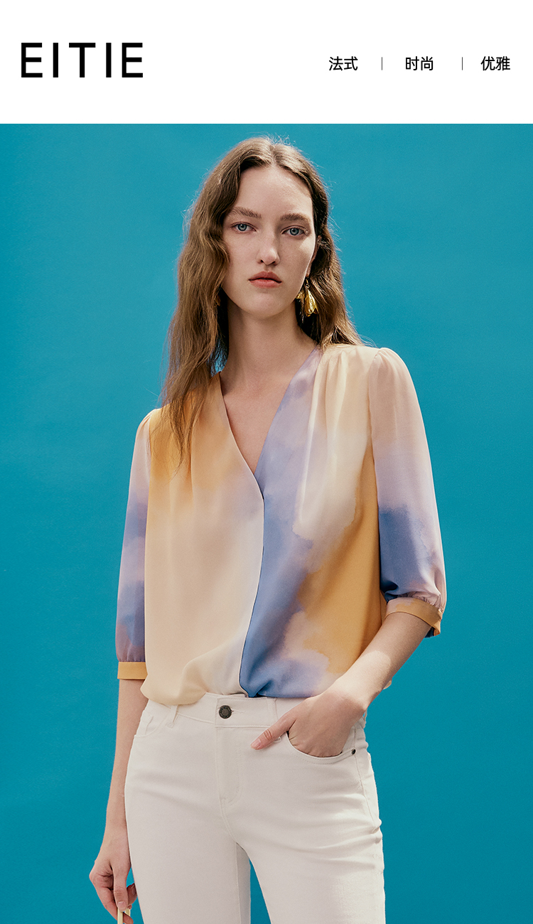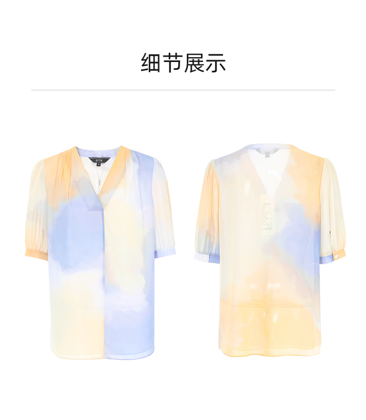 EITIE爱特爱夏季新款时尚个性扎染撞色印花衬衫上衣女7413121