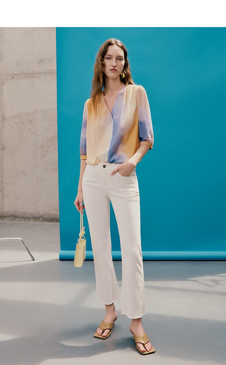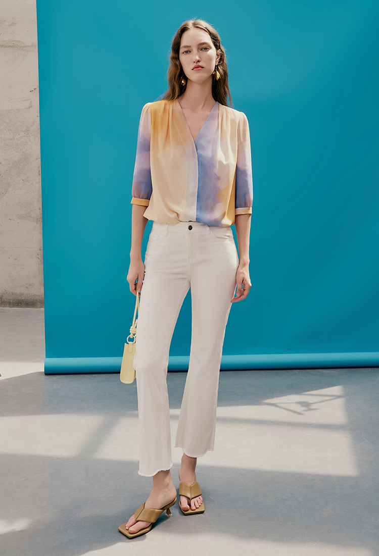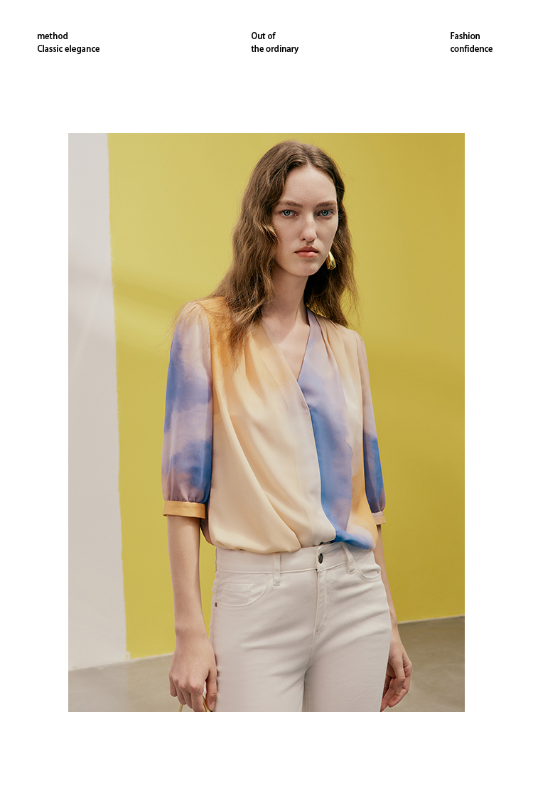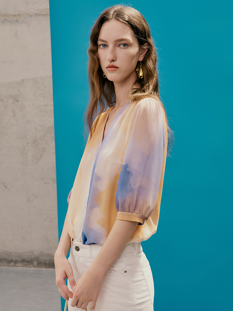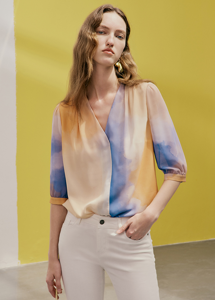 EITIE爱特爱夏季新款时尚个性扎染撞色印花衬衫上衣女7413121