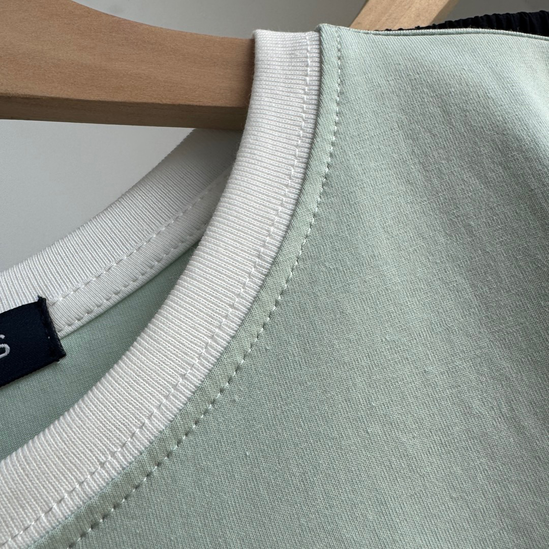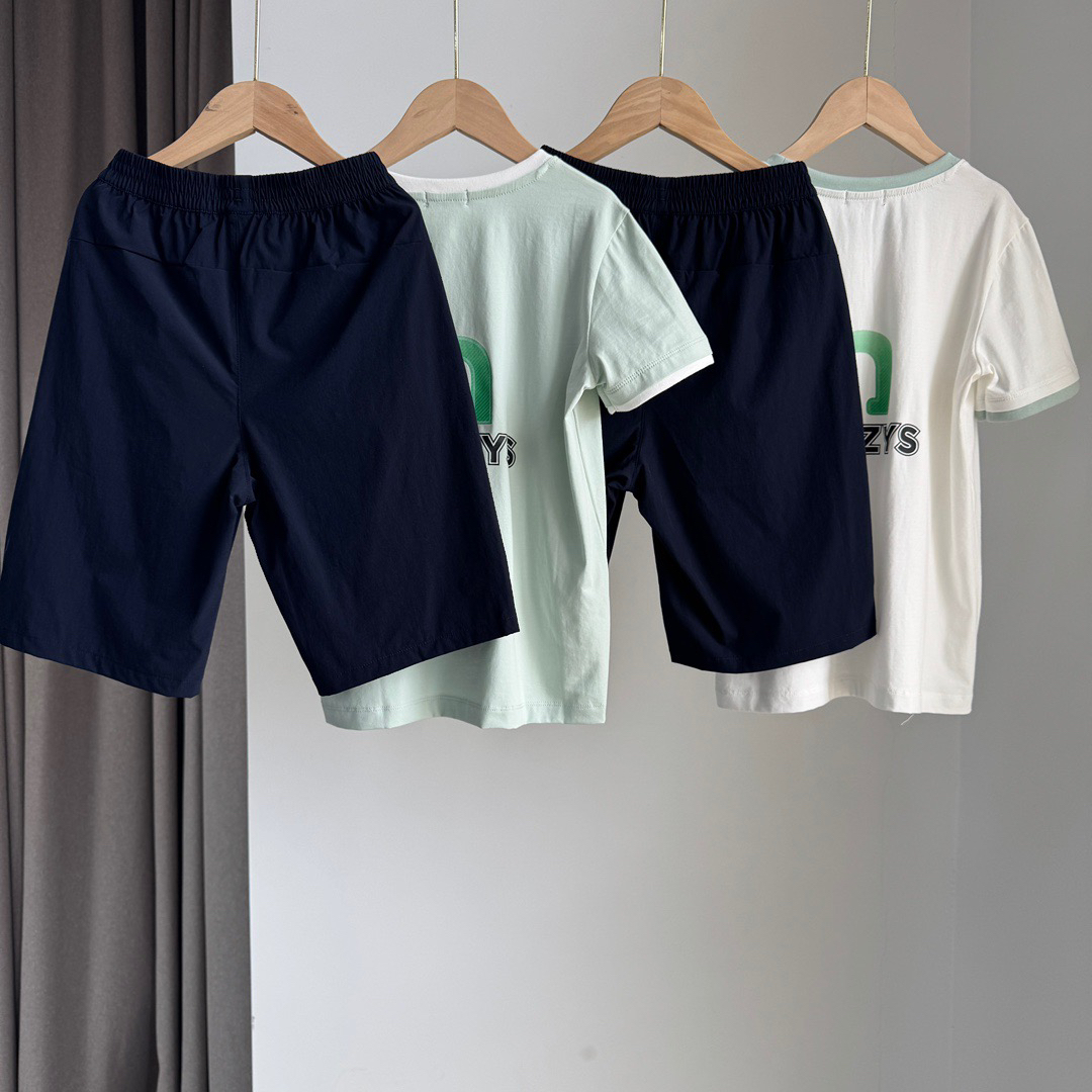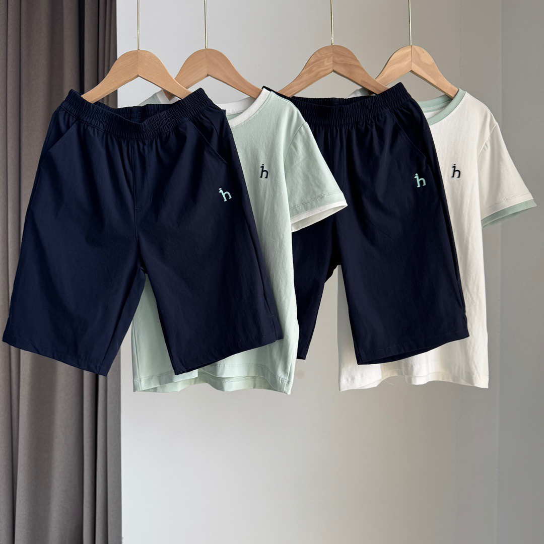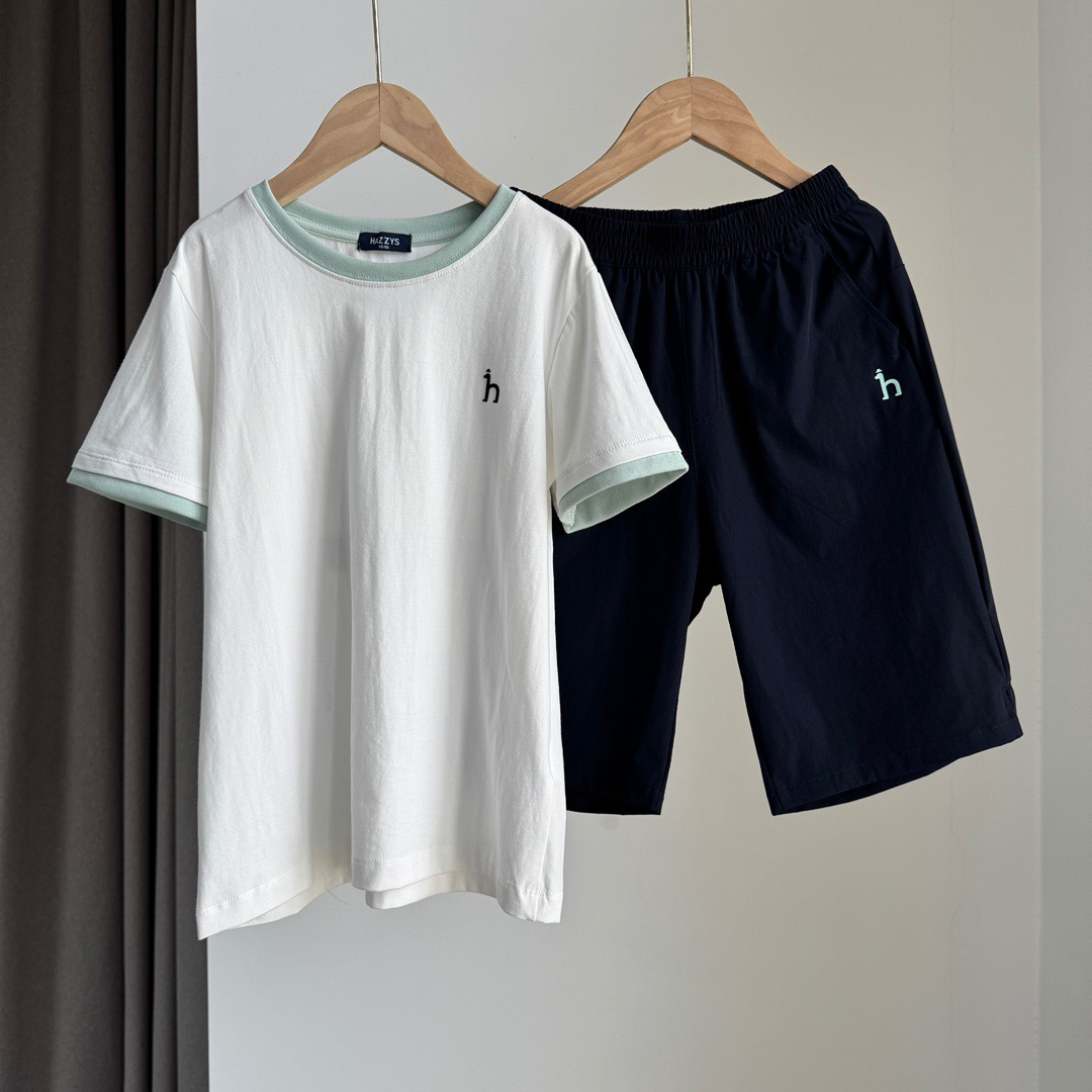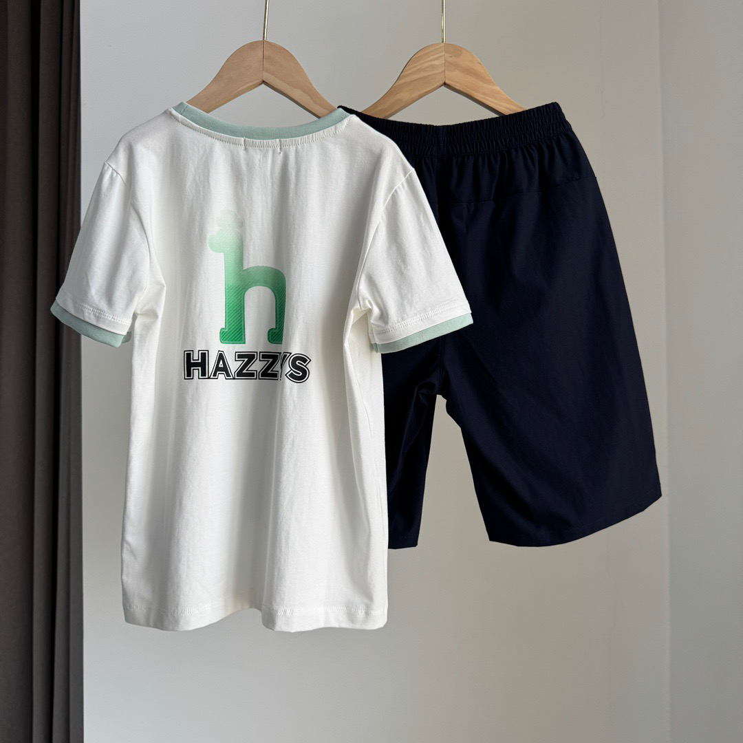 订单尾货,哈吉斯中大童短袖短裤套装,在售款式,订单刚刚走完,剩了一点要的来,两个颜色:白色套装,绿色套装,上衣100%纯棉材质,短裤是轻薄的速干面料,衣领和袖口都做了撞色拼接设计,后背印花LOGO渐变色,上身显干净,面料柔软细腻亲肤感超强,尺码:130-145-155-160-165……