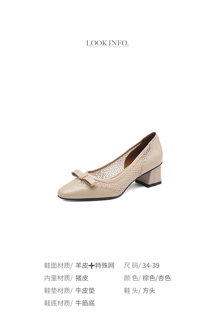 【货 号】: F1068【鞋面材质】: 羊皮+特殊网【鞋垫材质】:头层牛皮【内里材质】:头层猪皮【鞋底材质】:牛筋【跟 高】:4.5CM【颜 色】:茶棕 杏色
