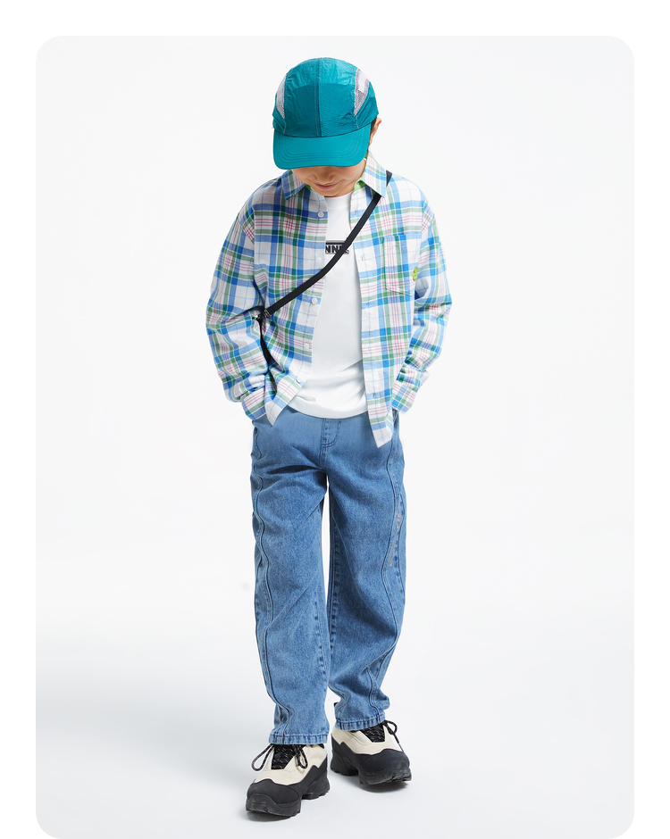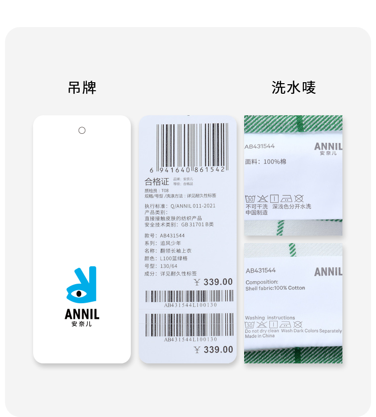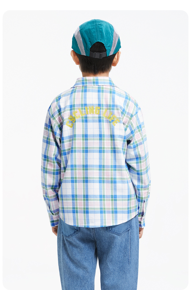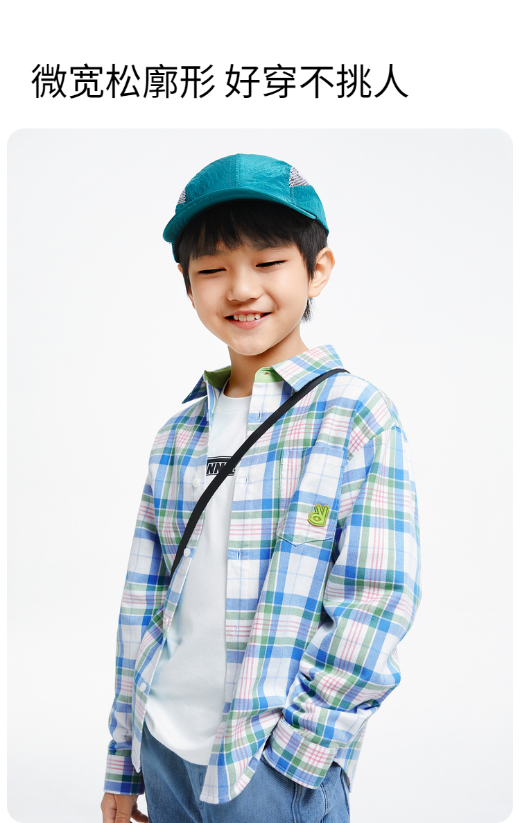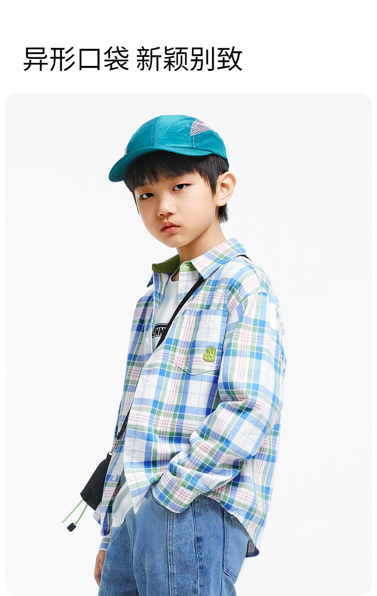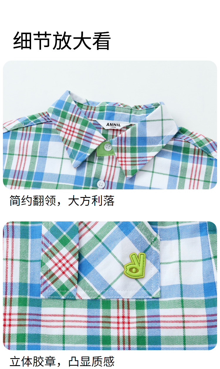 男童挺括全棉格子衫新款安奈儿童装实体店同款AB431544