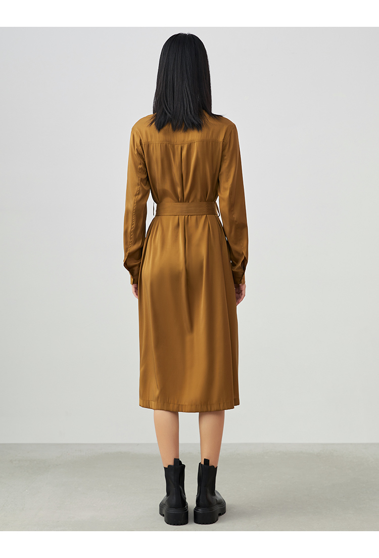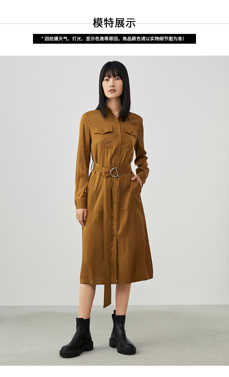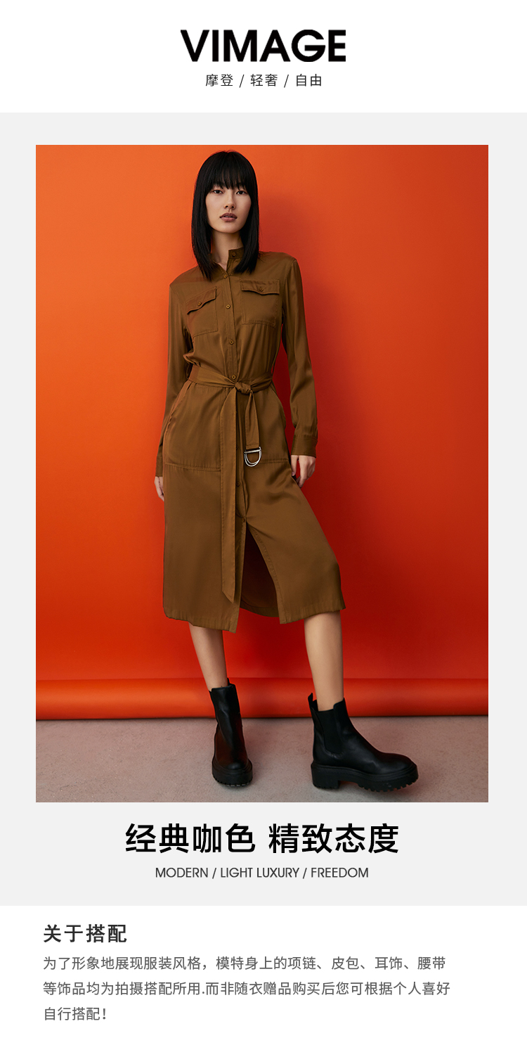 VIMAGE纬漫纪春季新款系带长袖优雅显瘦裙摆开叉连衣裙V1707352
