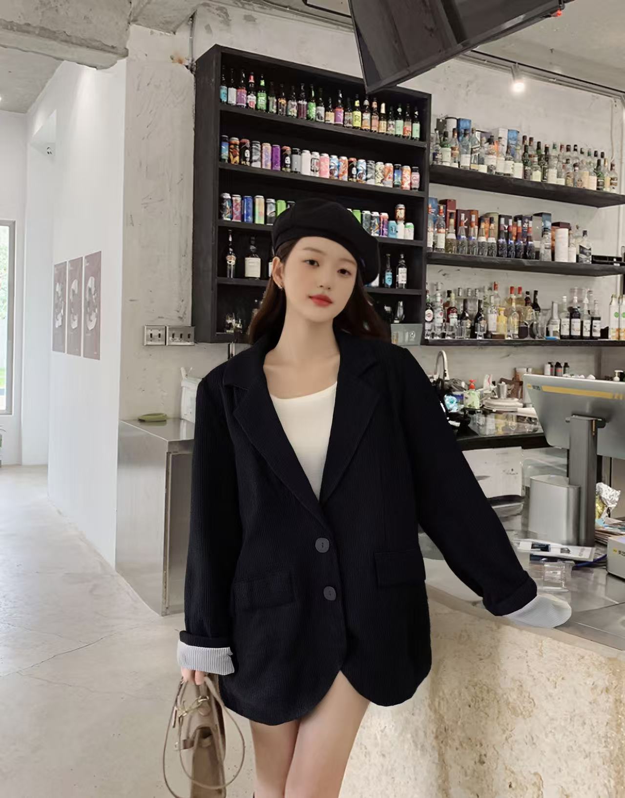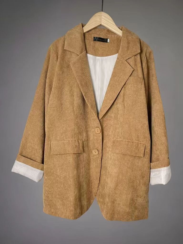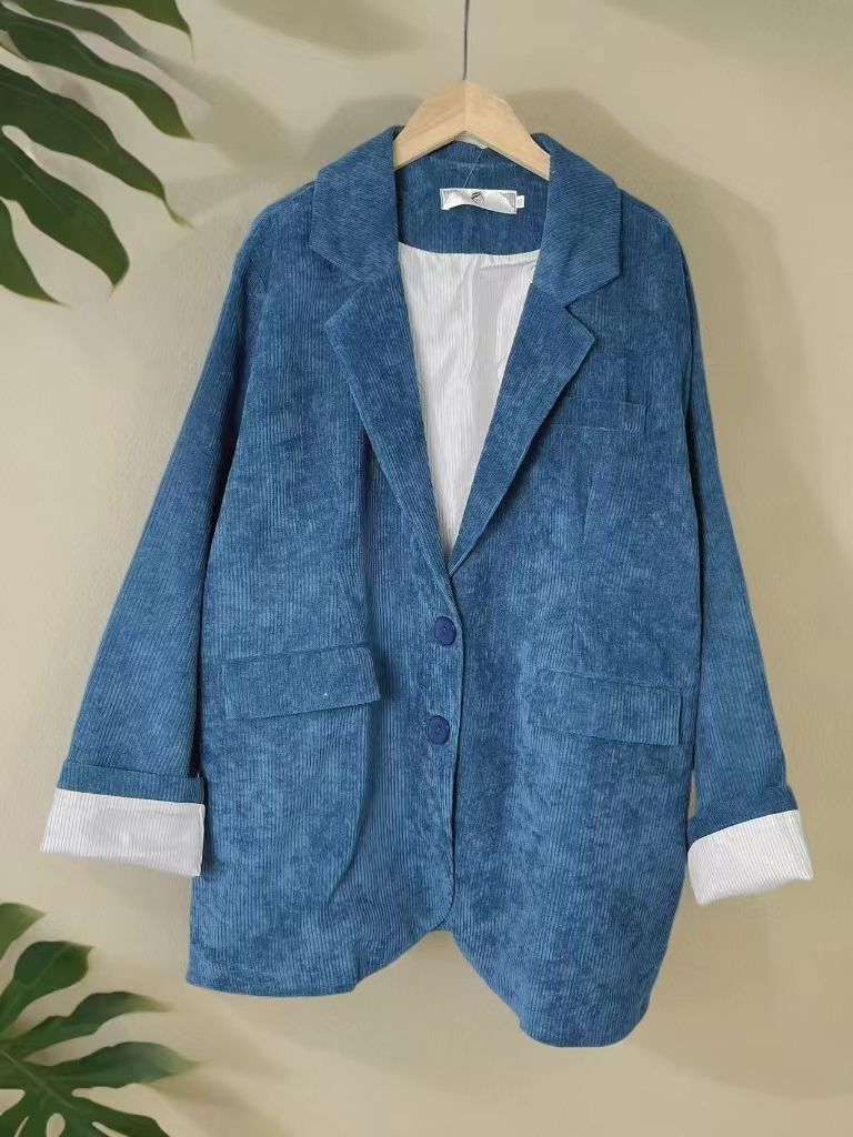 【诗铭洛可】XC7092西服条绒卷边袖宽松外套B19-3