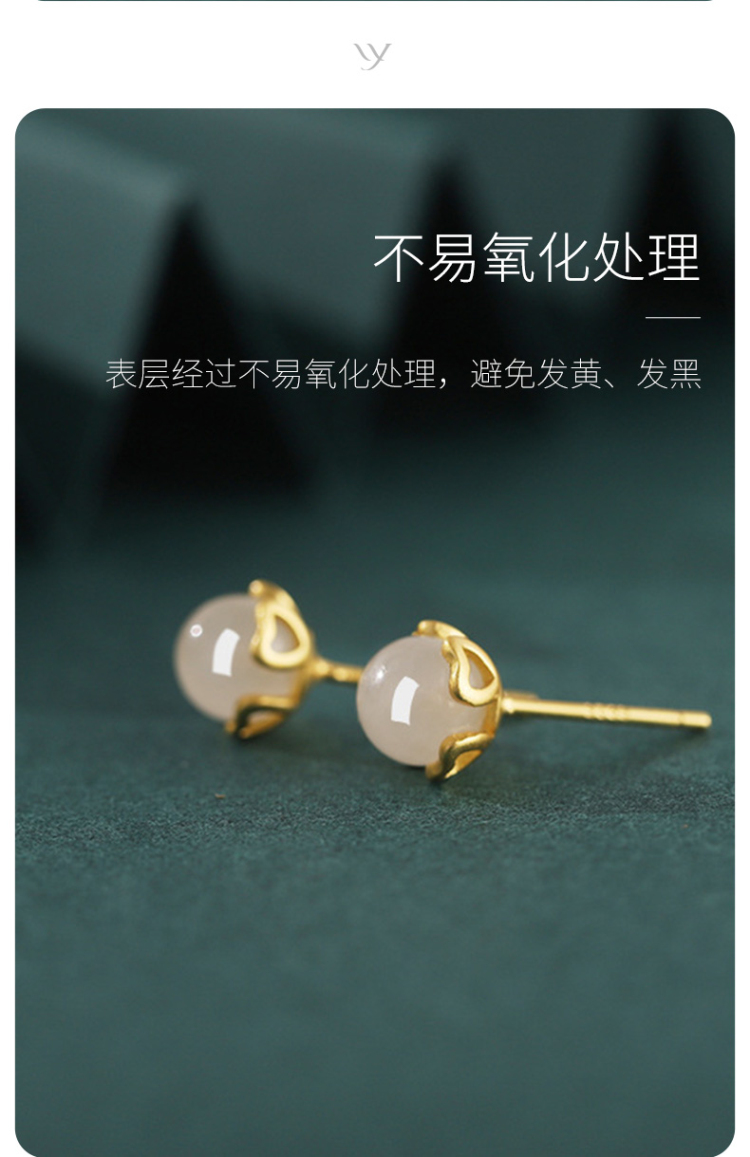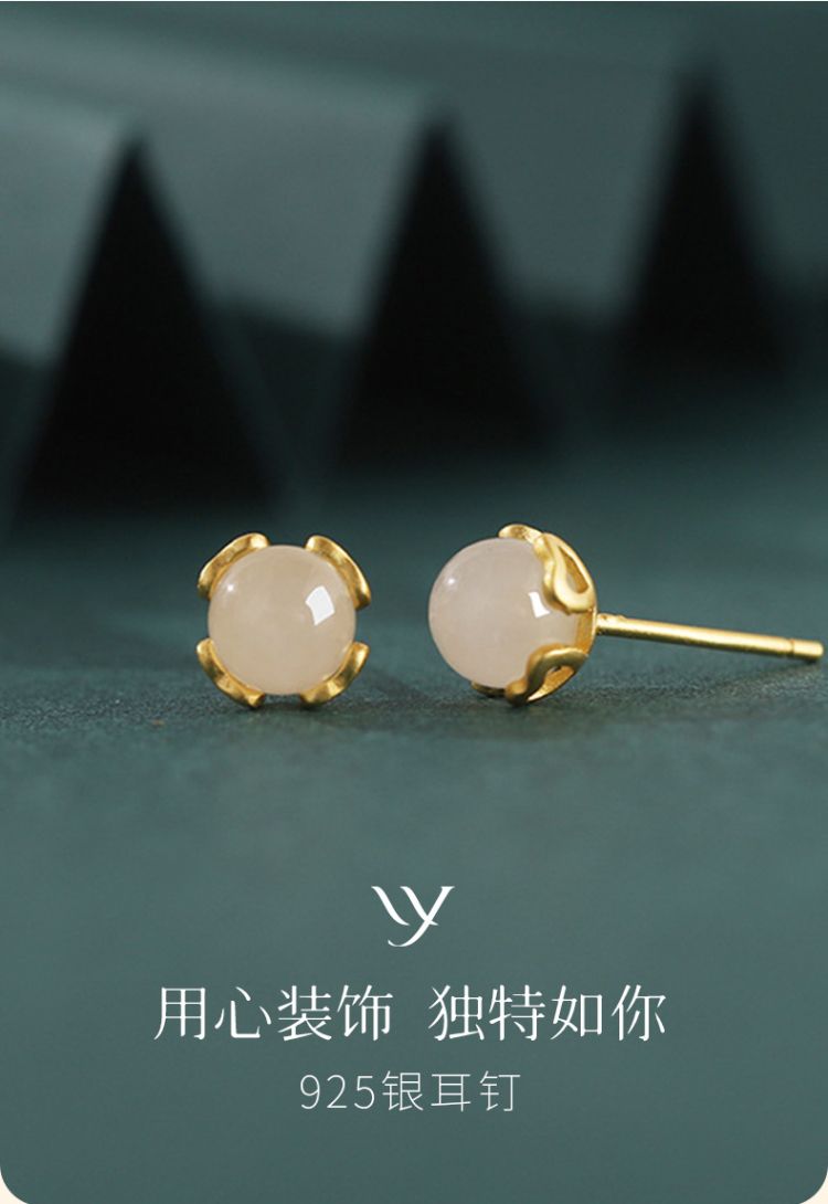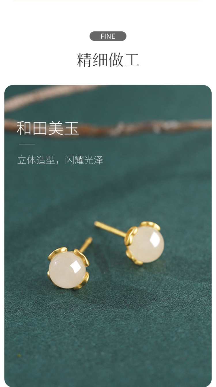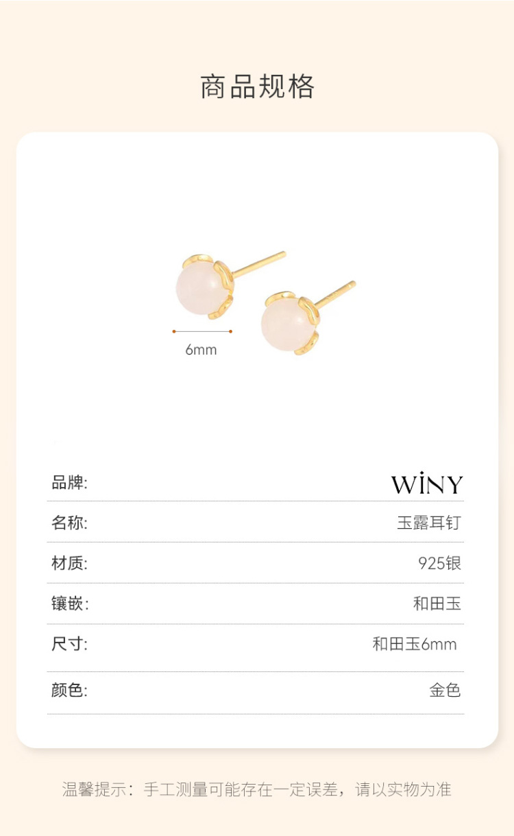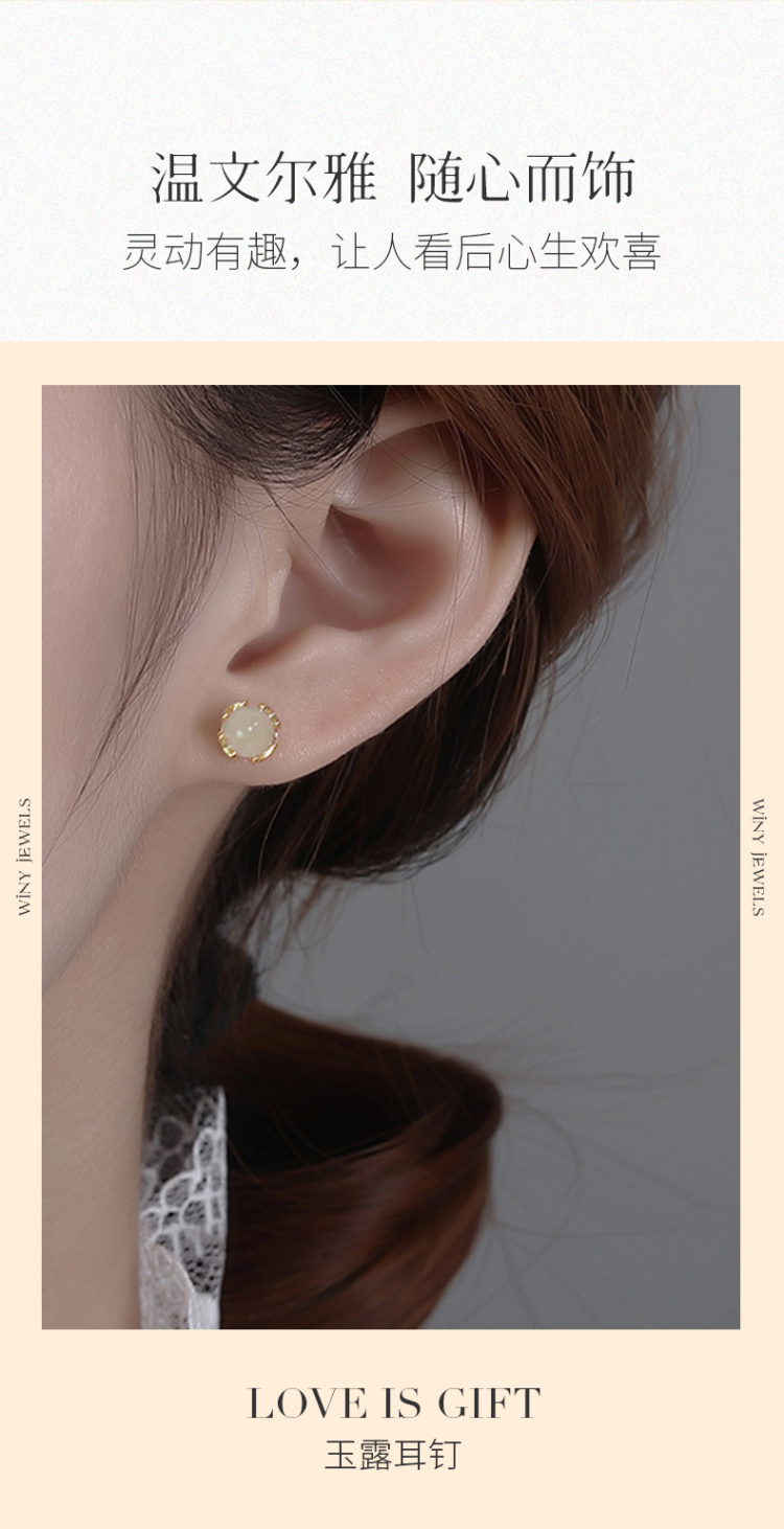 Winy925纯银玉露耳钉女生和田玉新中式耳饰轻奢小众生日礼物送女友