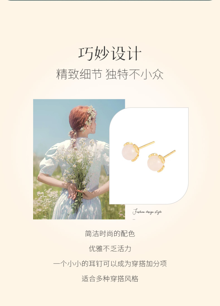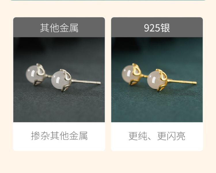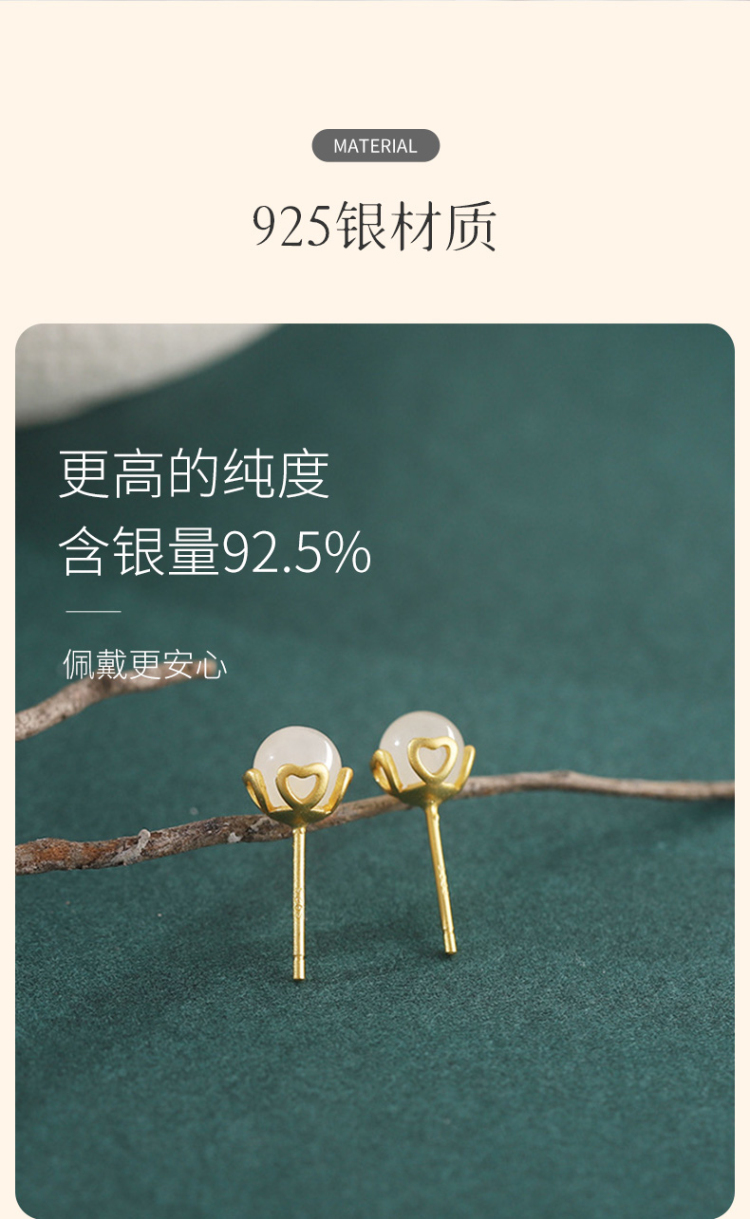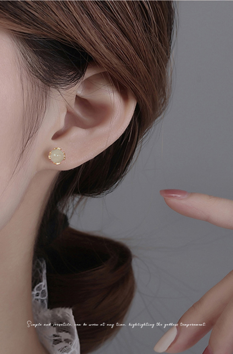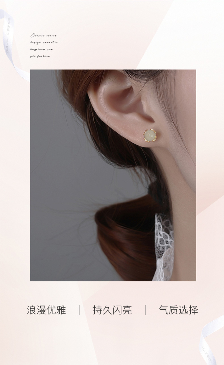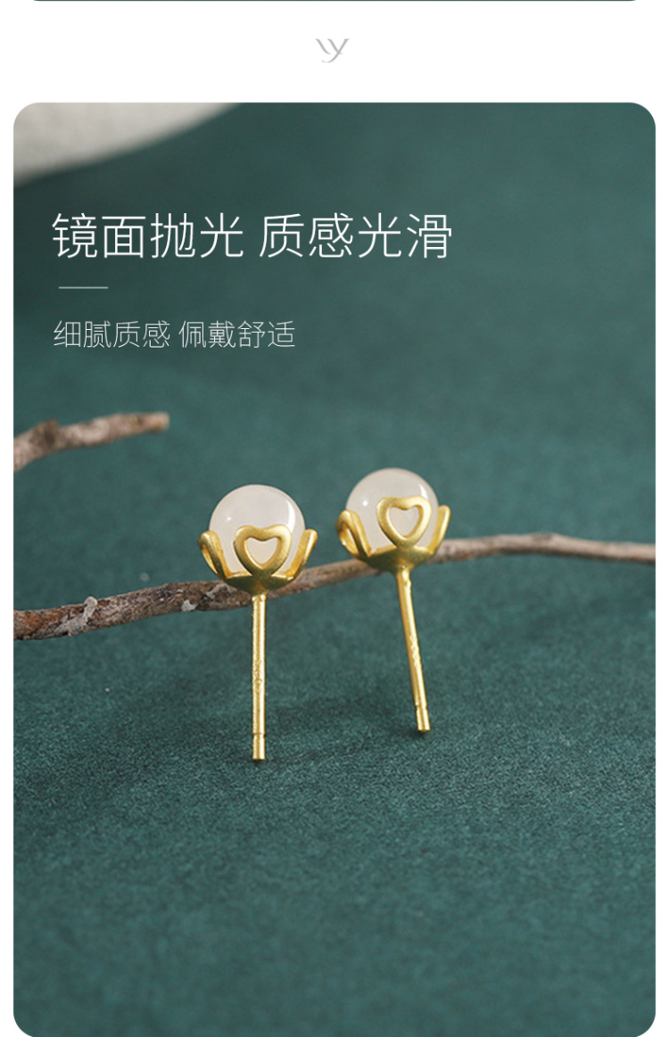 Winy925纯银玉露耳钉女生和田玉新中式耳饰轻奢小众生日礼物送女友
