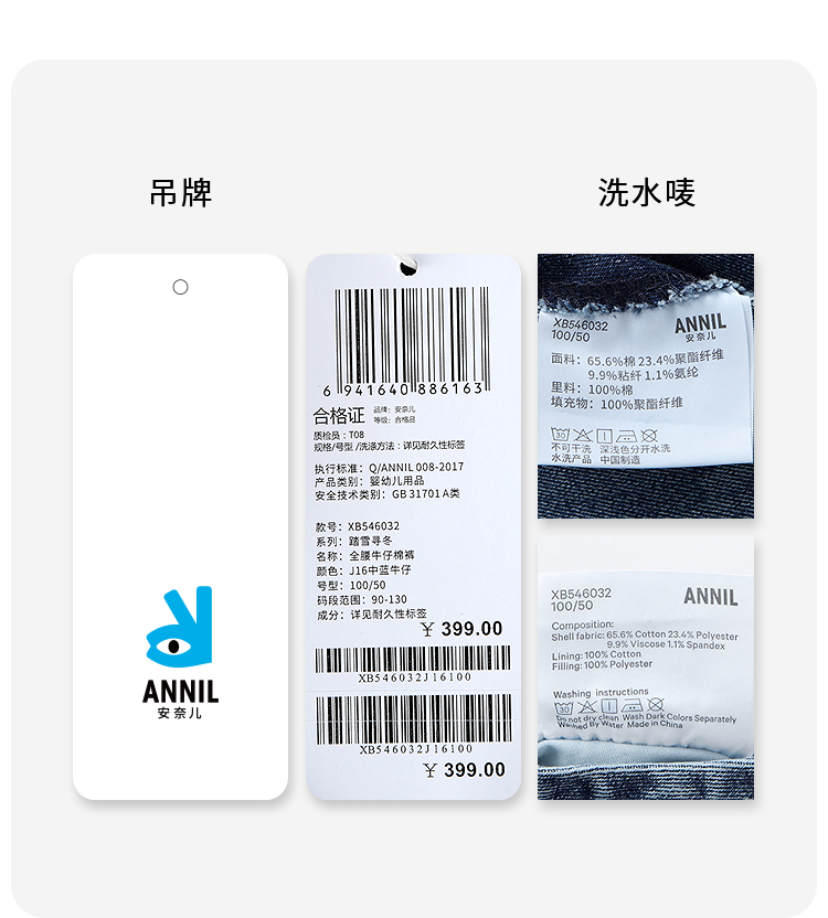 【实体店同款】男童全腰牛仔棉裤冬季新款安奈儿童装XB546032