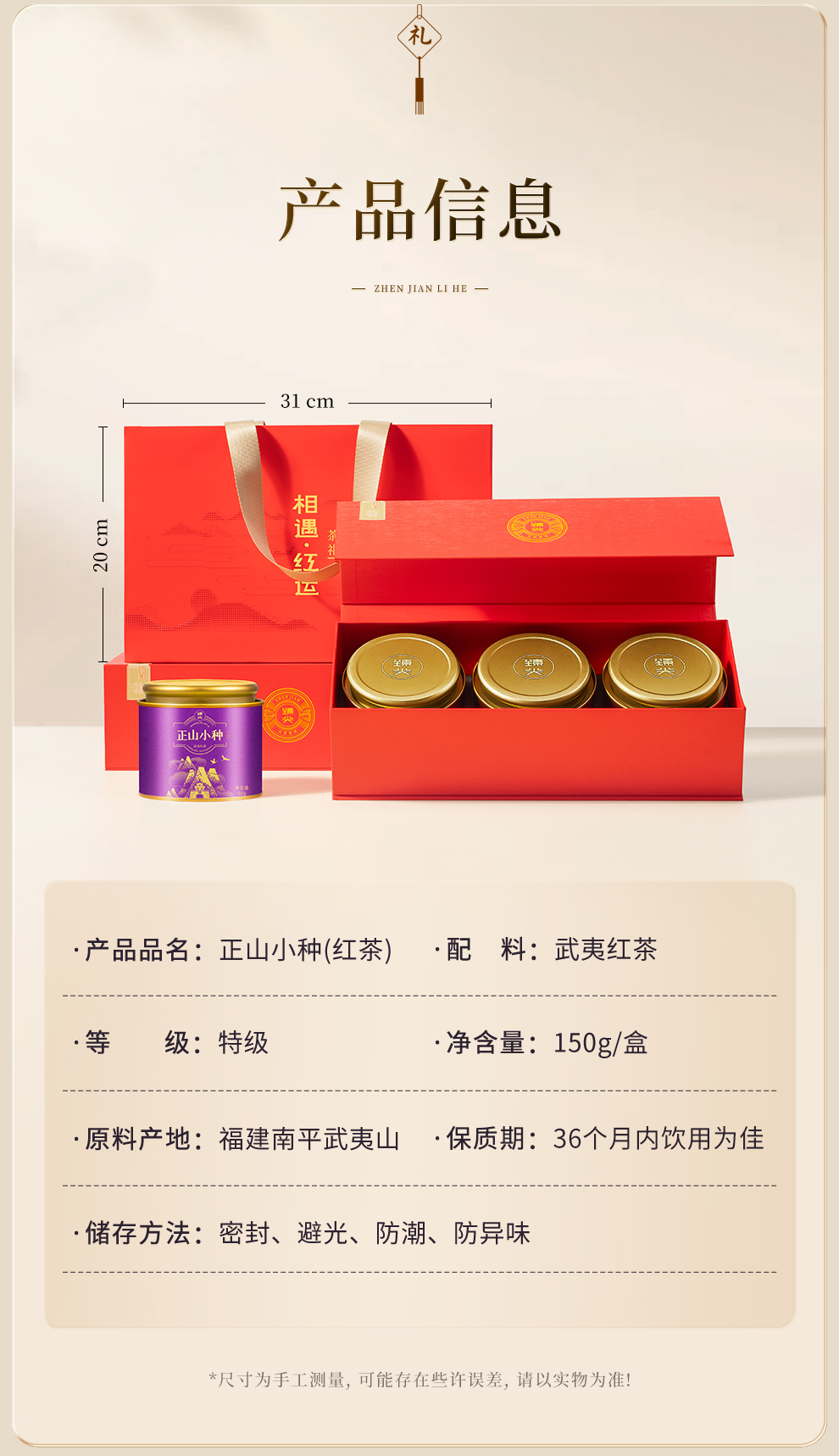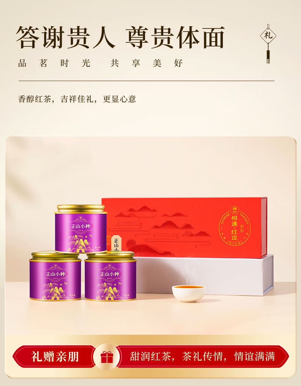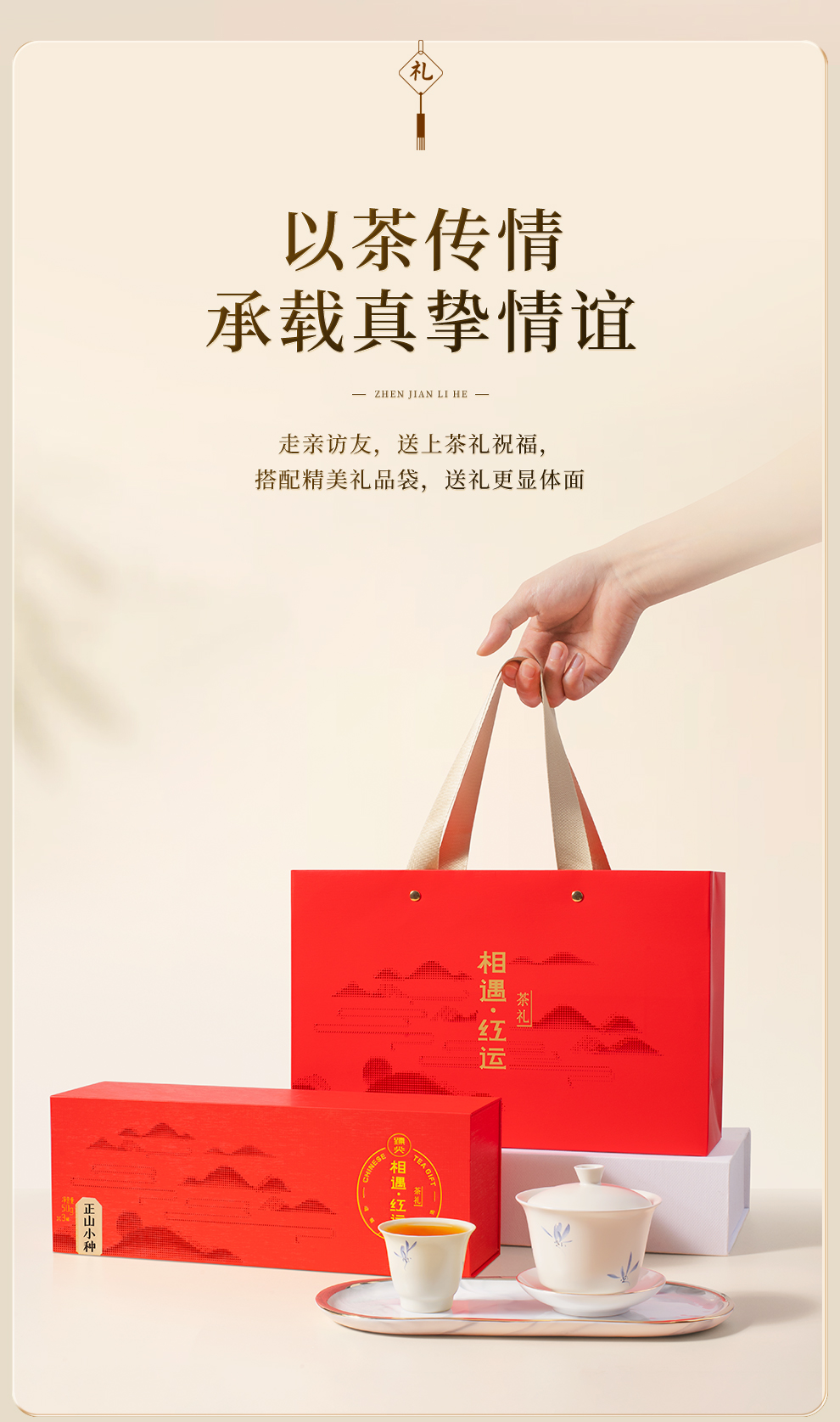 【臻尖-正山小种相遇红运红色礼盒】茶叶礼盒装特级正山小种红茶送礼长辈年货伴手礼新年礼盒官方正品