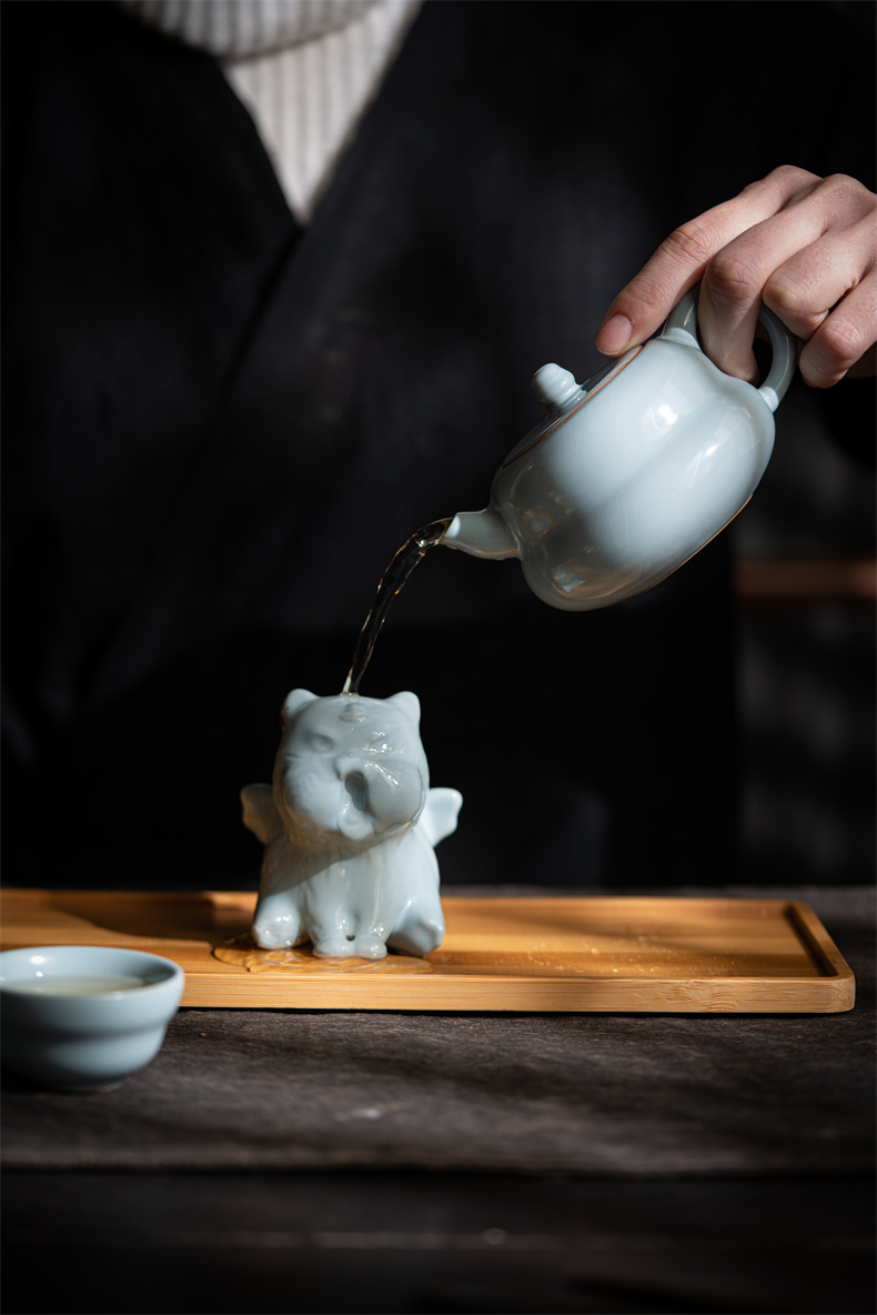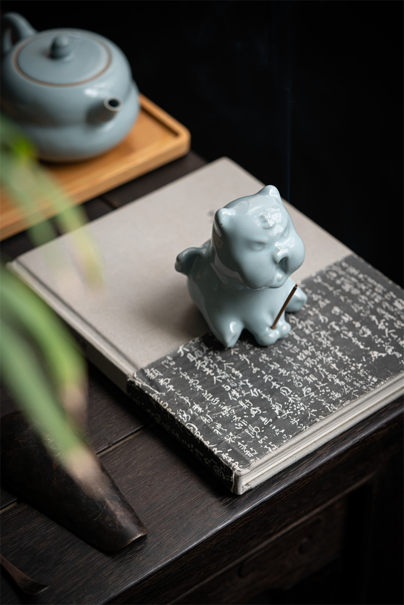汝山明 生肖虎香插摆件汝窑茶宠 壬寅虎年,养一只汝瓷萌虎,来一套葫芦壶茶器,愿你汝虎添翼,虎禄双全 生肖虎香插摆件汝窑茶宠