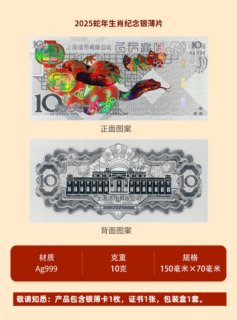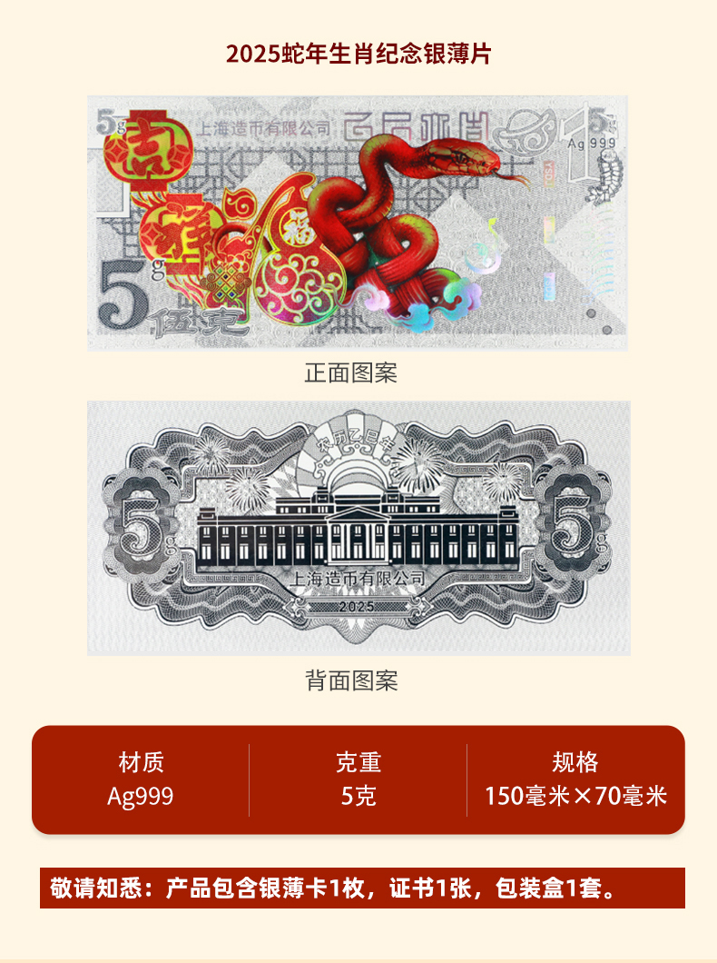 【上海造币】2025蛇年生肖金银券 发行价 系列第四枚