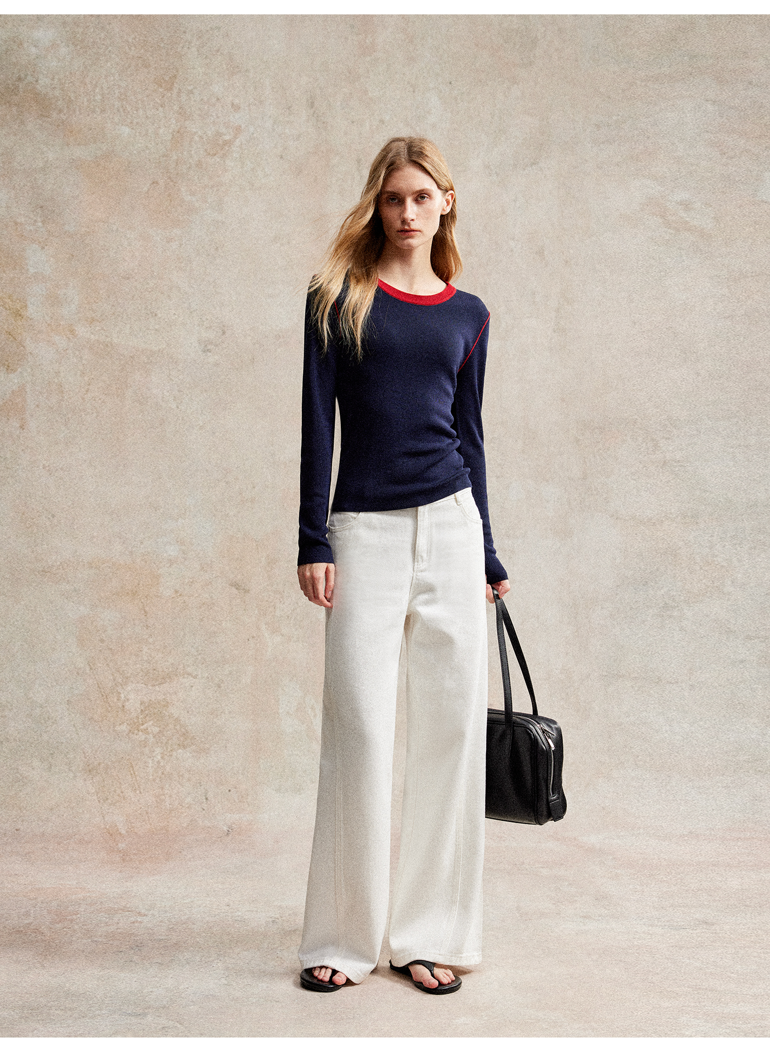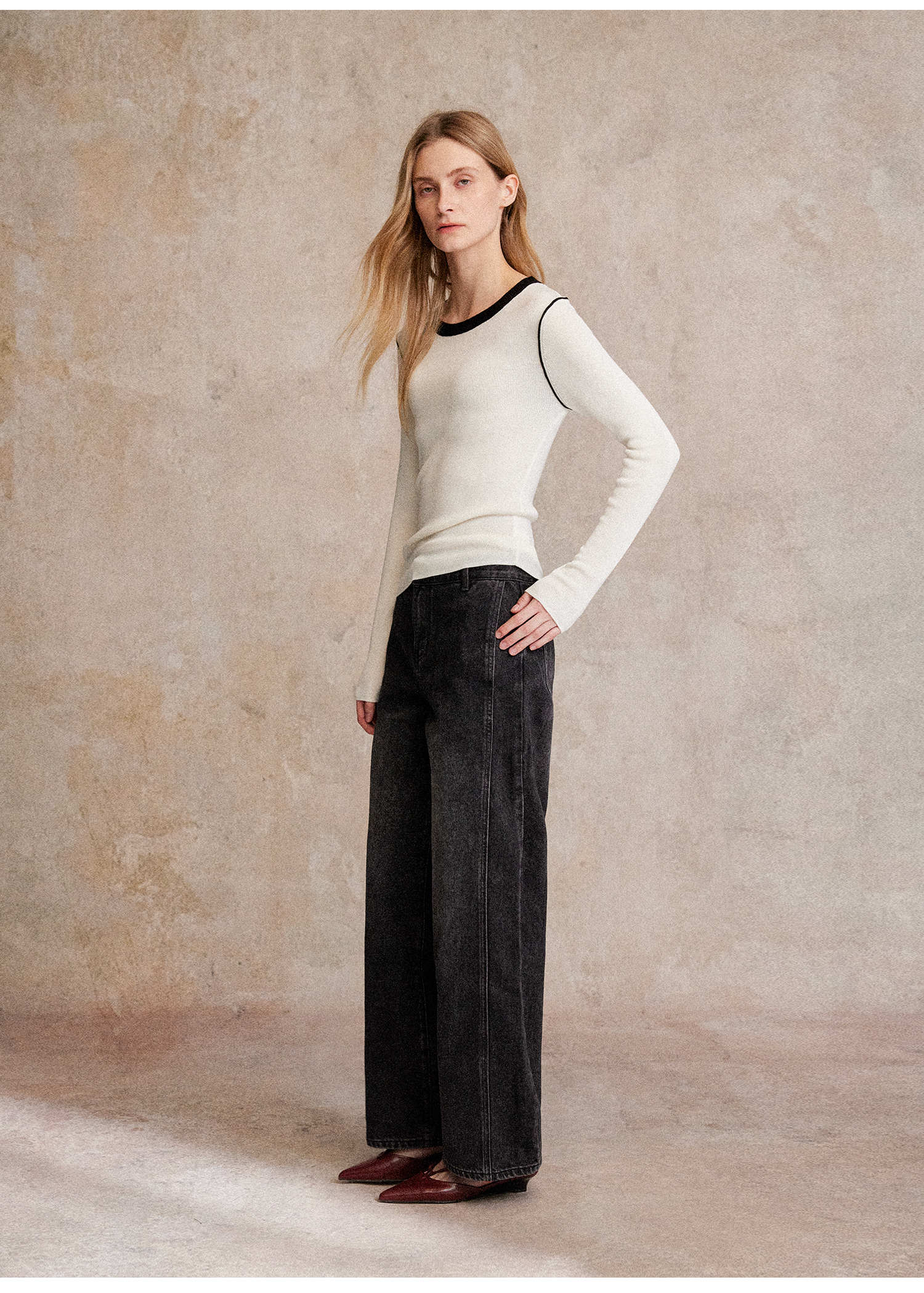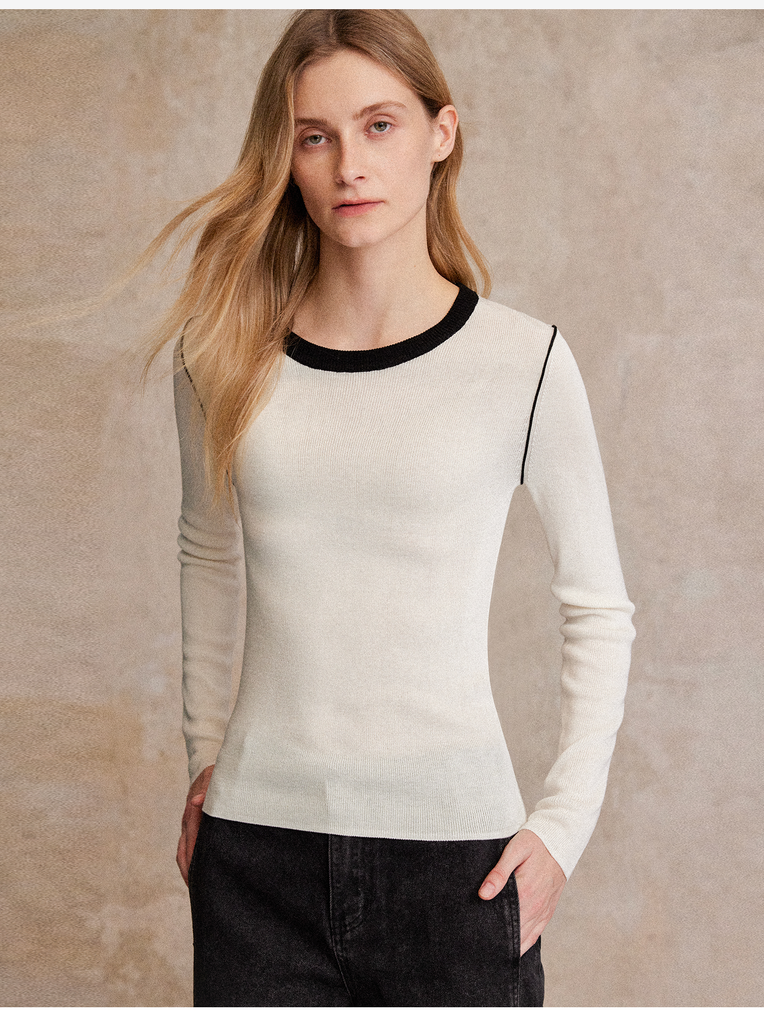 C+IMPRESS/西嘉天丝羊毛 撞色圆领复古显瘦针织衫女秋季新款上衣