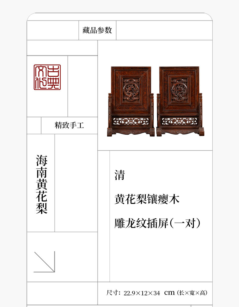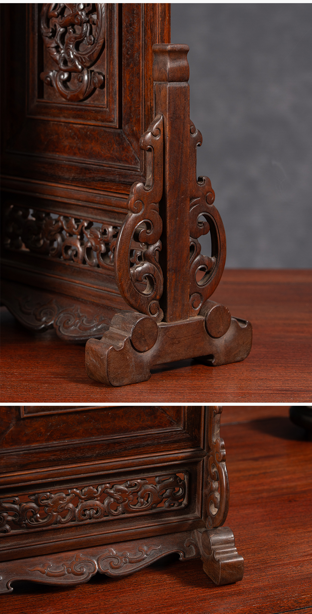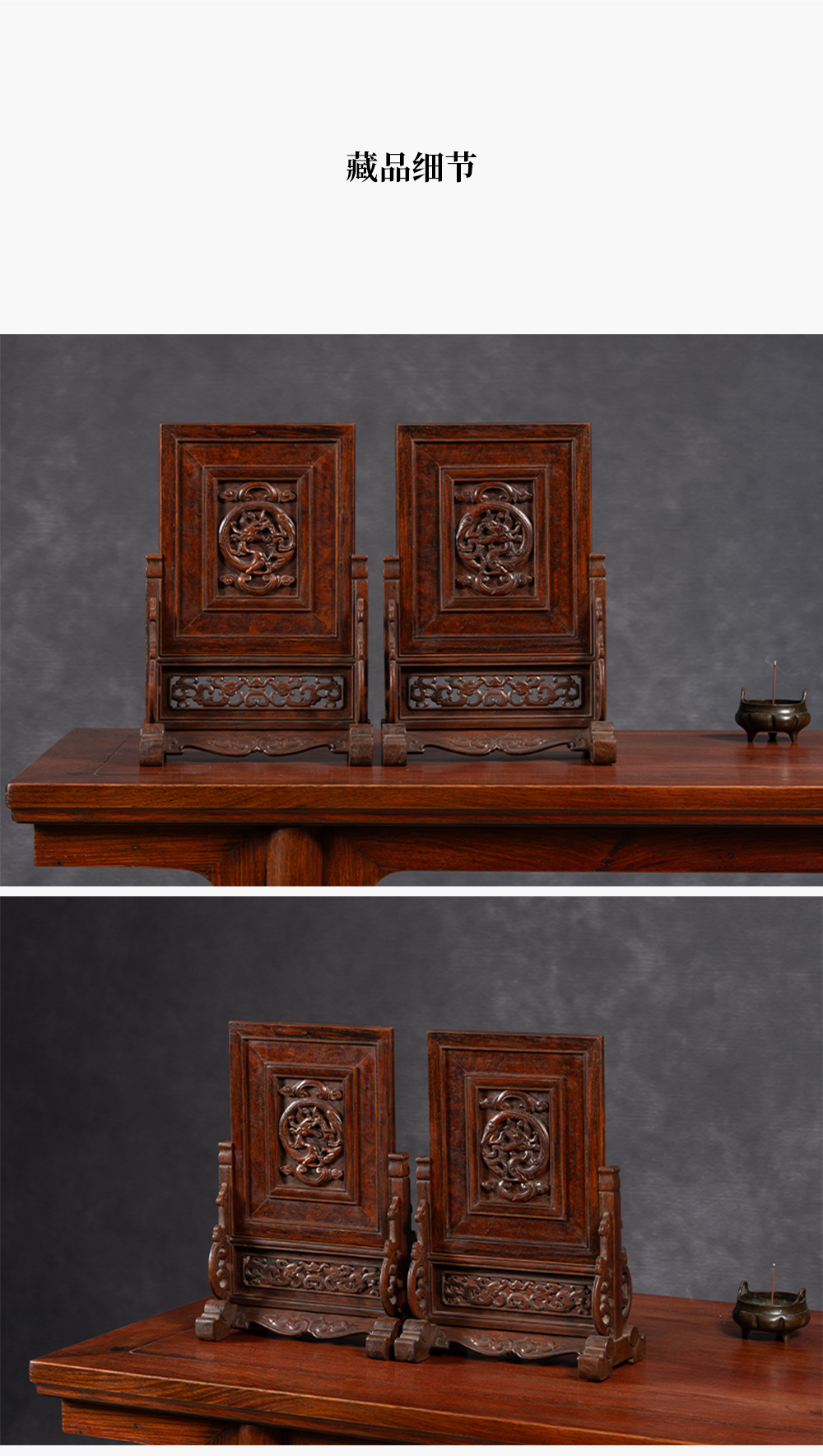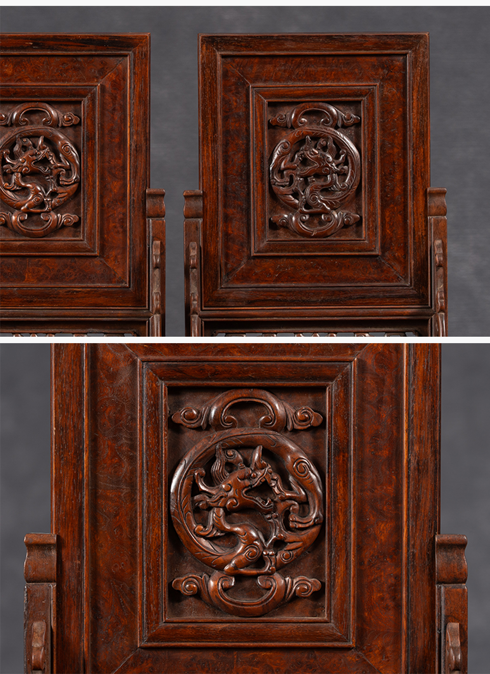 清 黄花梨镶瘿木雕龙纹插屏(一对)