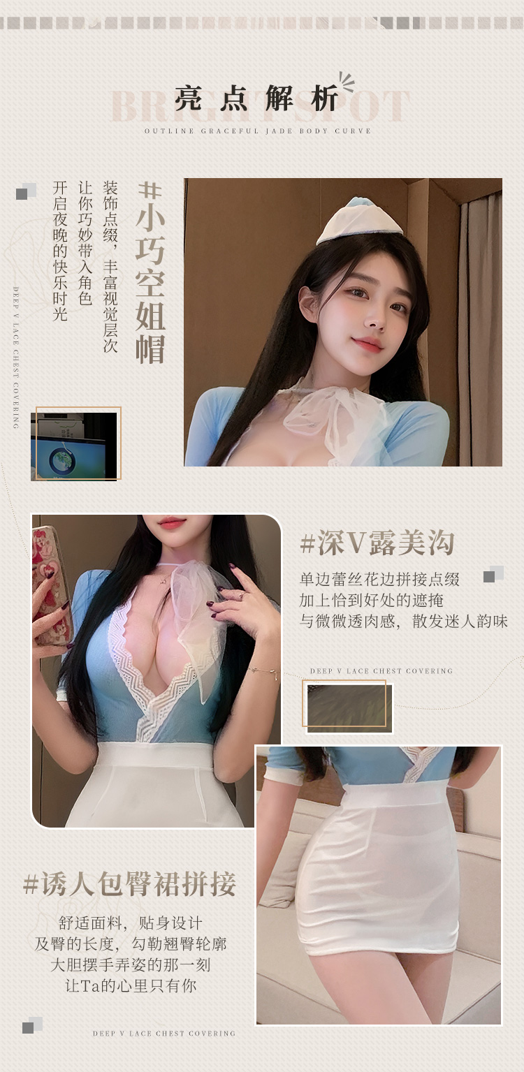 【包臀空姐】霏慕 甜蜜航线深V包臀空姐装6401