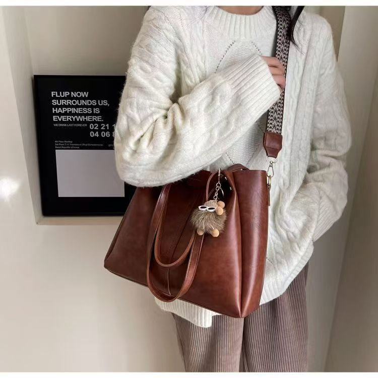 【超大容量轻便减负❗️简约大气百搭】大容量托特包包女秋冬时尚复古单肩包宽带斜挎包大学生上课通勤包。jd