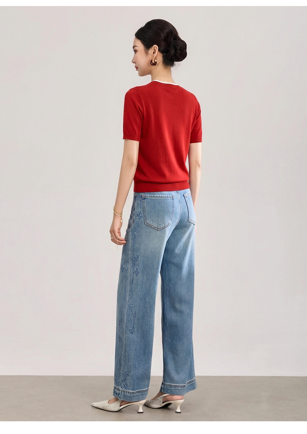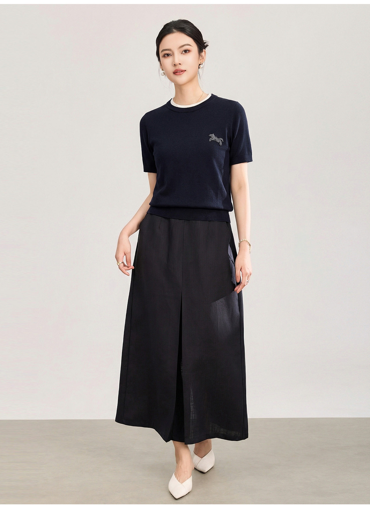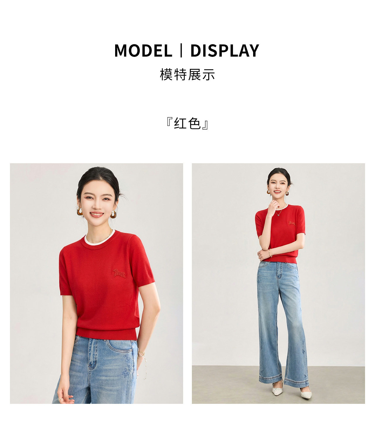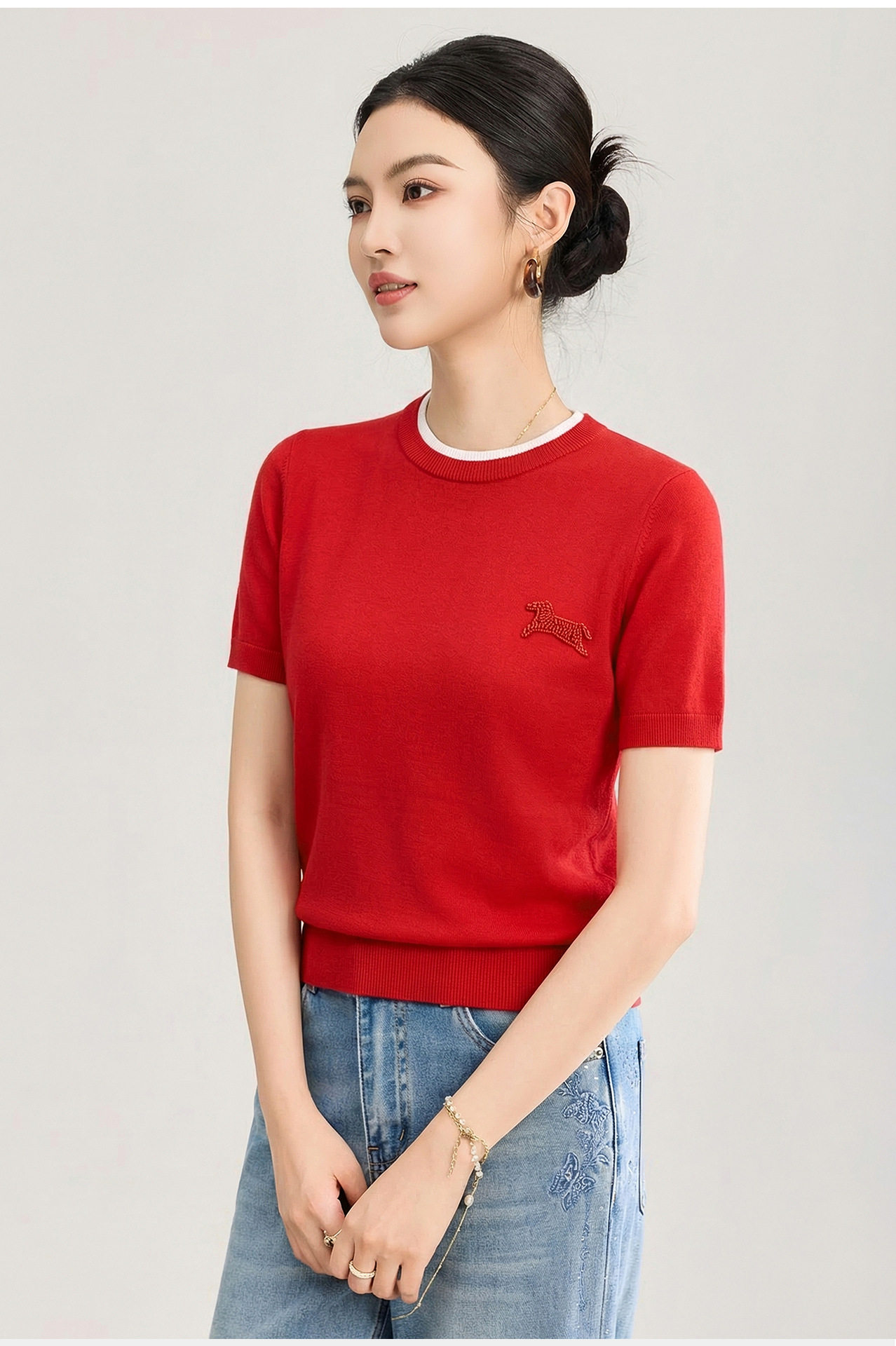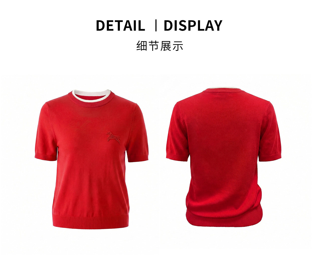 「高货wl」全新升级【铂金会员174/天猫229/差价55】(02328)洛诗琳美丽诺羊毛假两件针织T恤2026春夏小马钉珠短袖上衣
