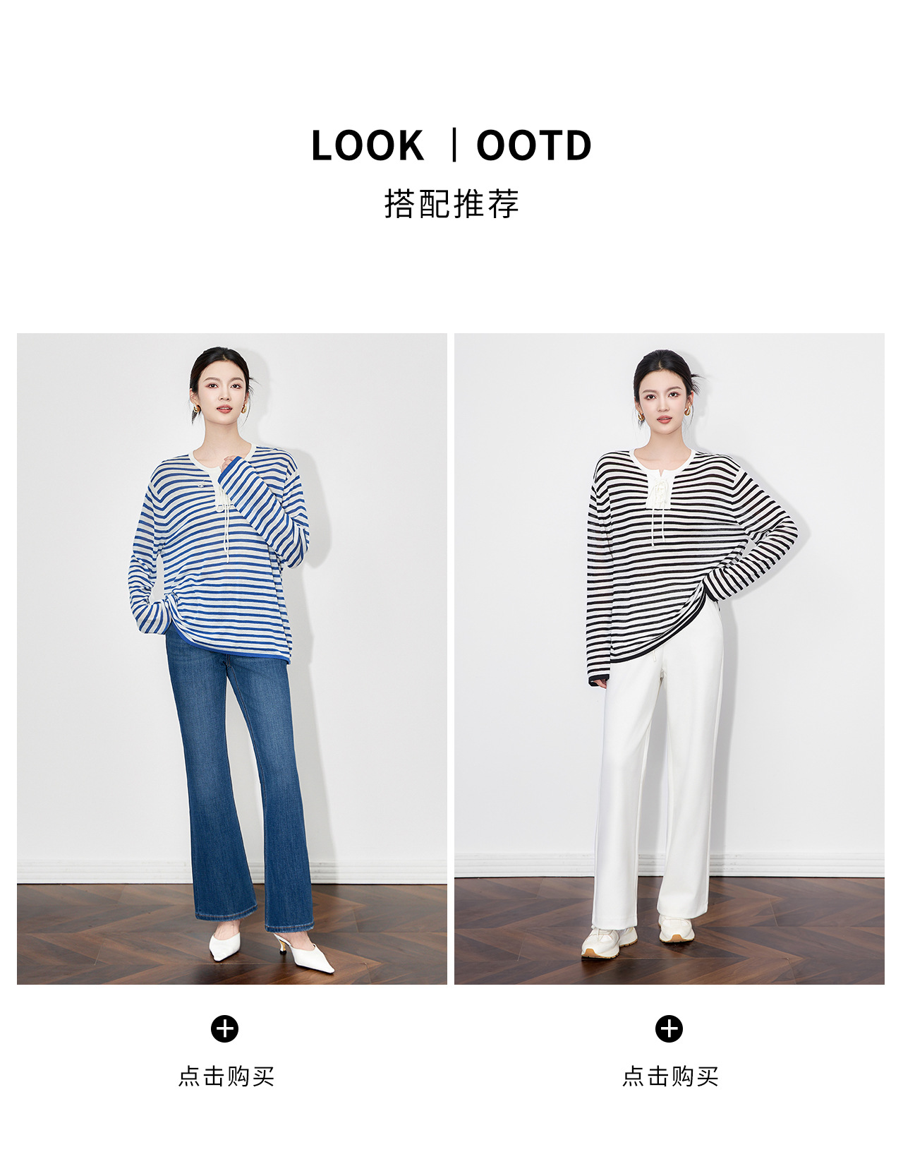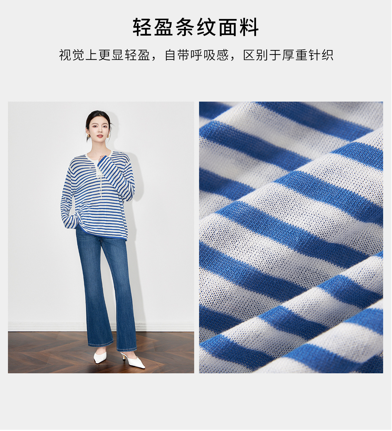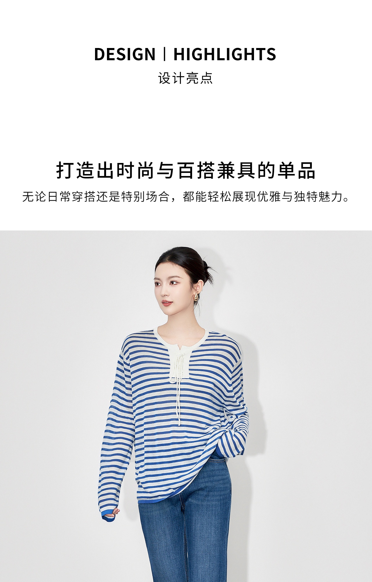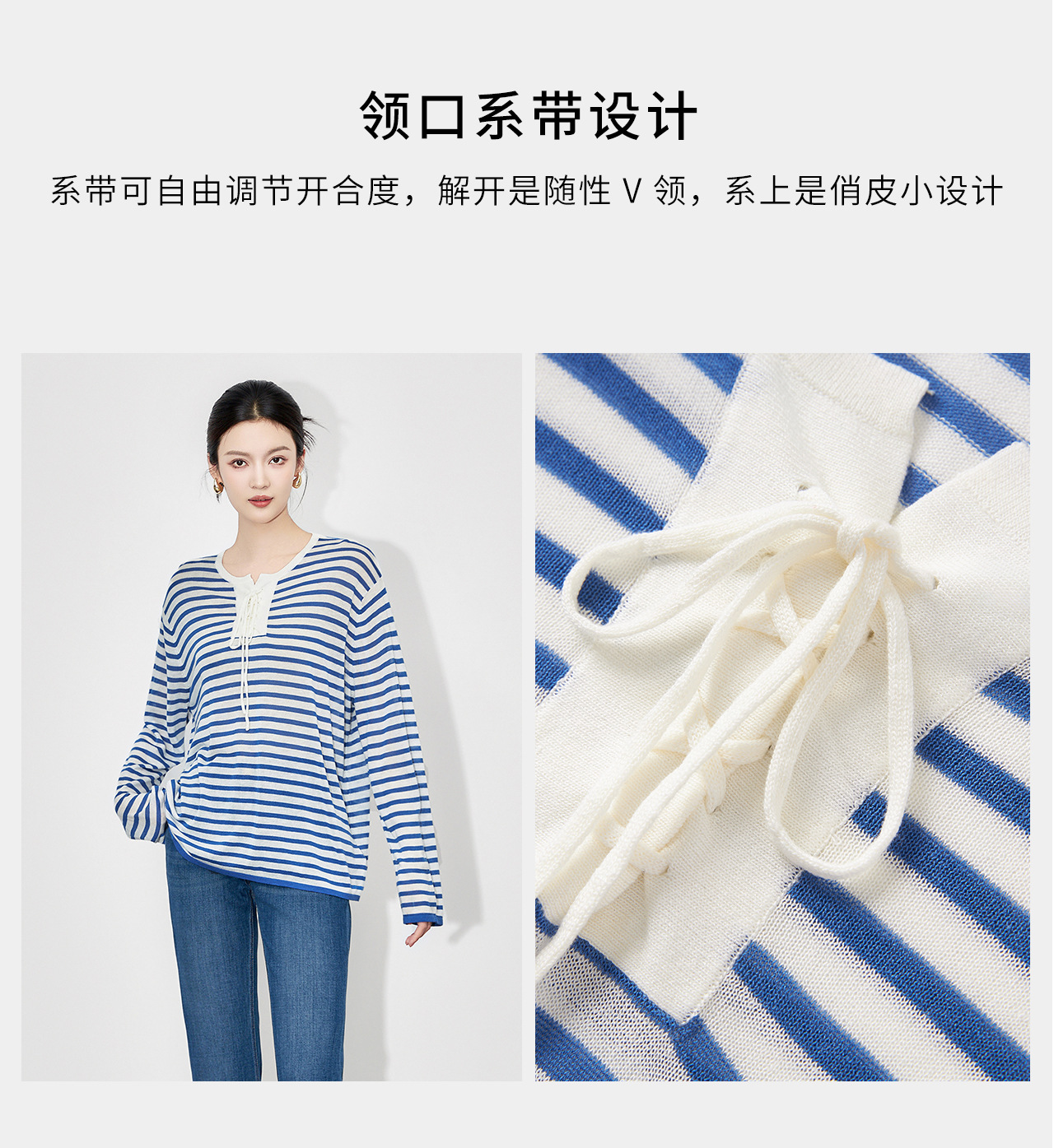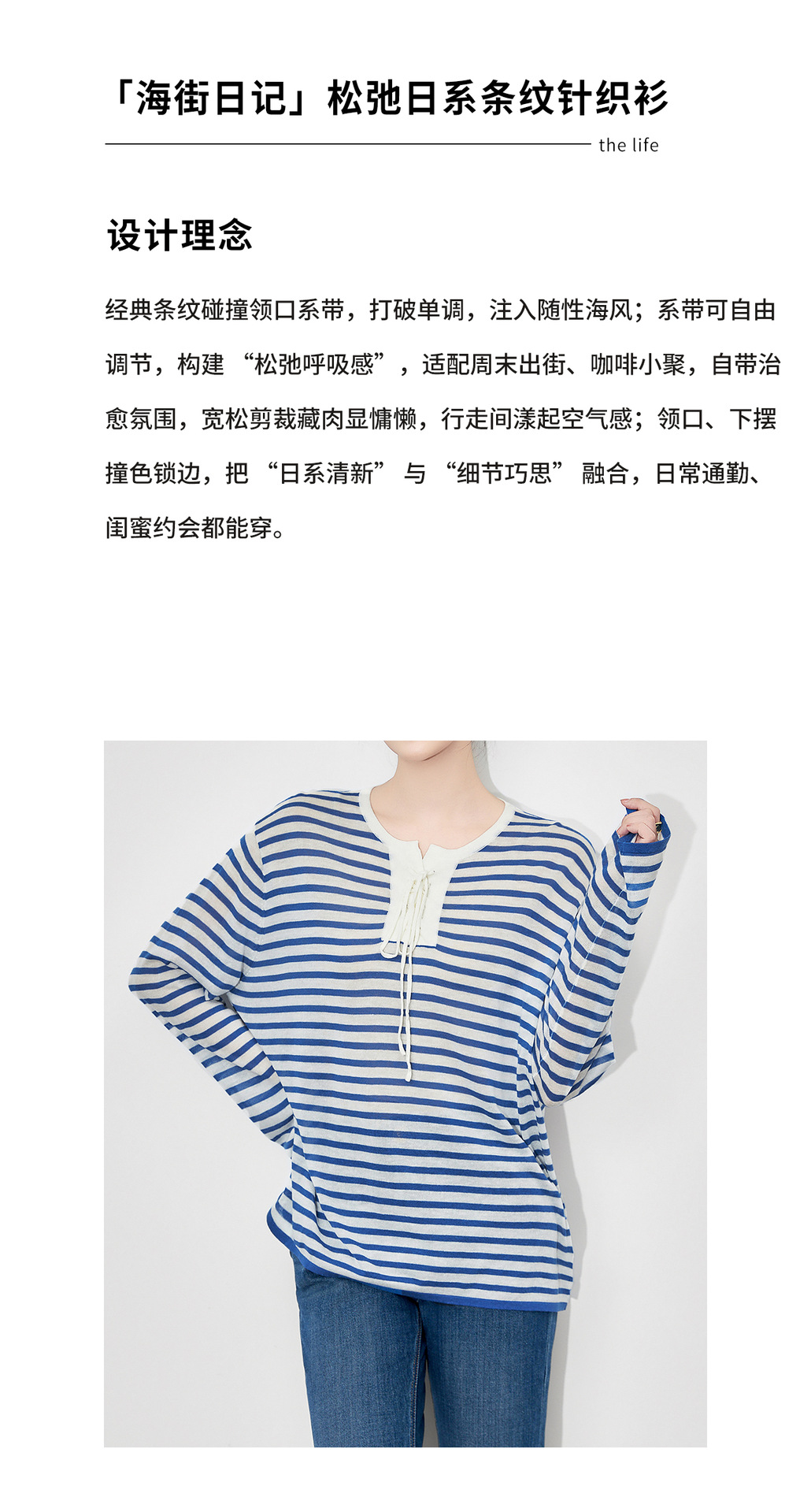 「高货wl」全新升级【铂金会员211/天猫279/差价68】(43036)洛诗琳气质海军风条纹针织衫2025秋季法式慵懒长袖T恤上衣