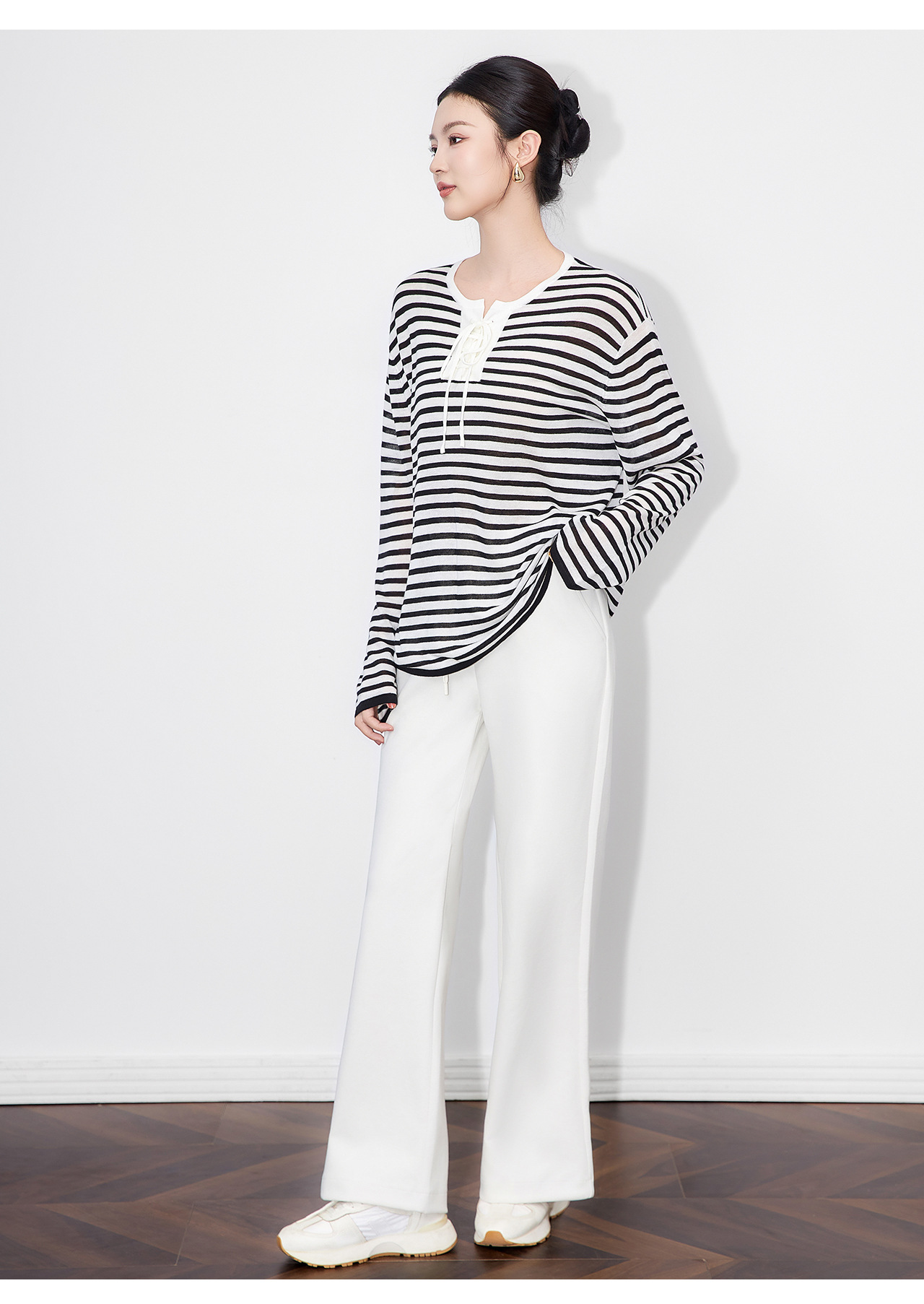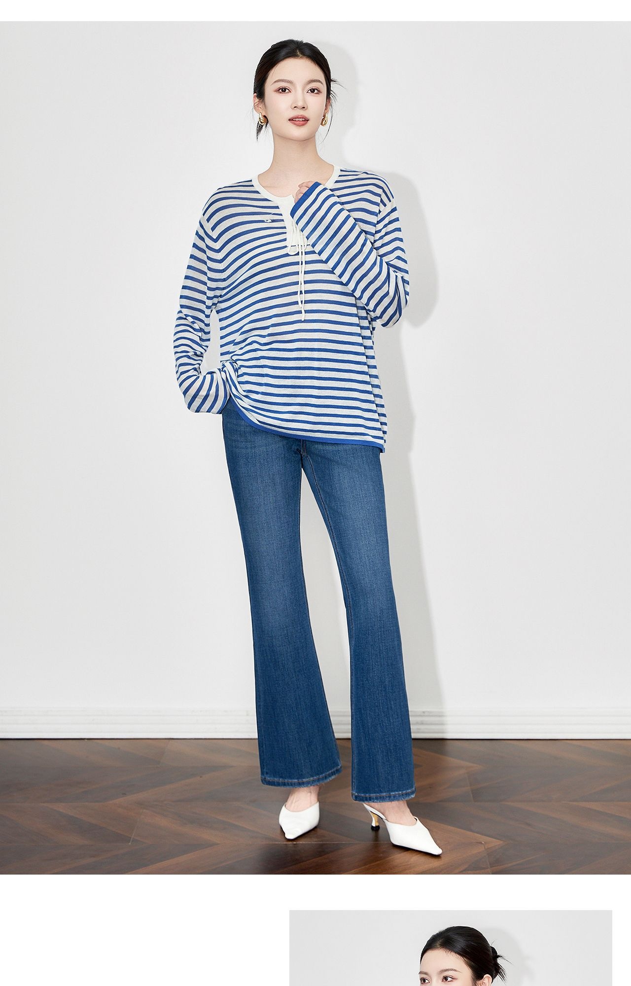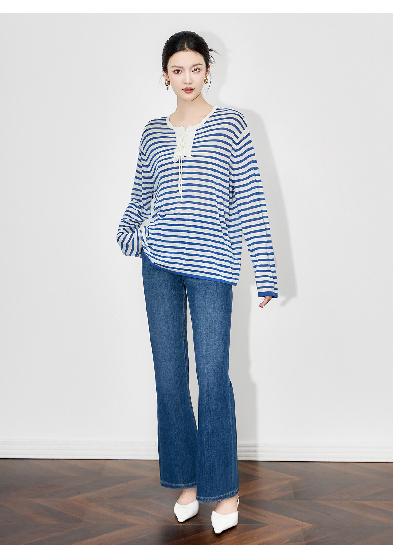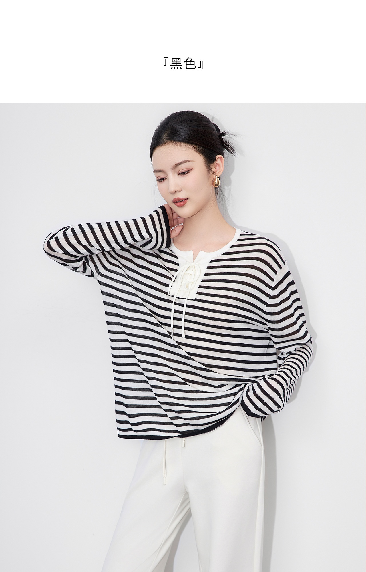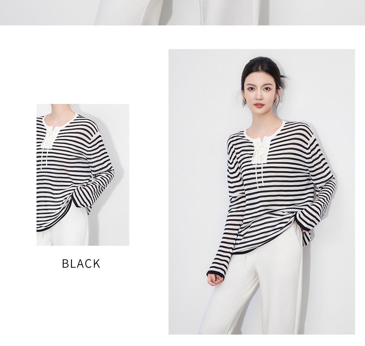 「高货wl」全新升级【铂金会员211/天猫279/差价68】(43036)洛诗琳气质海军风条纹针织衫2025秋季法式慵懒长袖T恤上衣