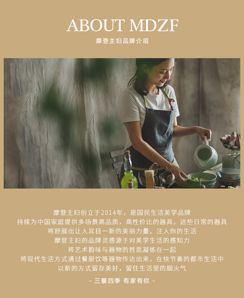 - 摩登主妇的创始人娜娜,是一个普通的80后妈妈,因为一个简单而执着的想法,要让“中国制造”的优质商品走进国内主妇们的生活,摩登主妇的品牌页由此而来。