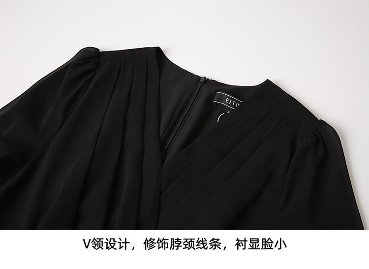 EITIE爱特爱女装早秋雪纺长袖套套系带上衣T恤雪纺衫女5713411