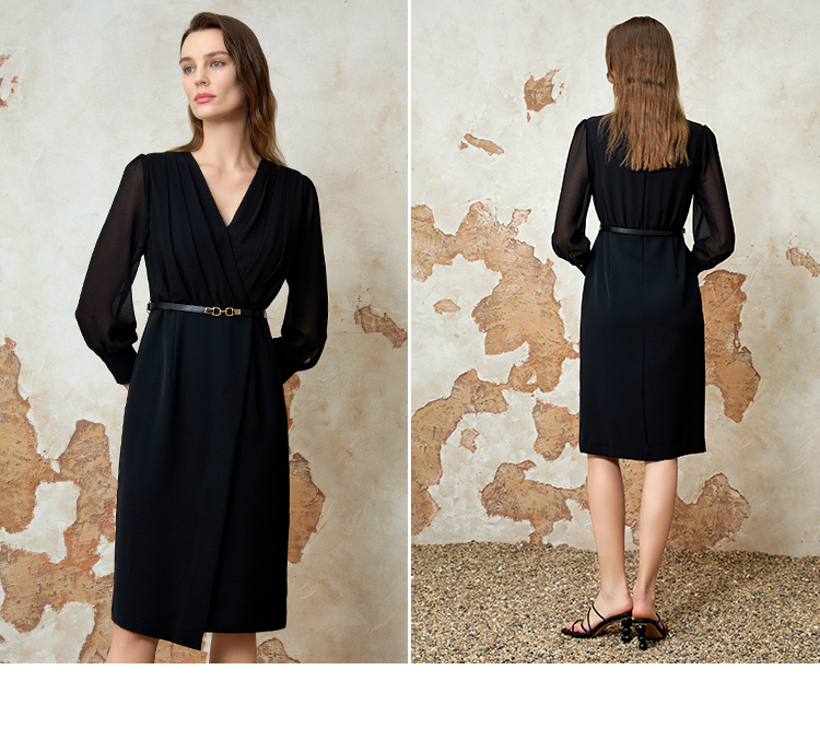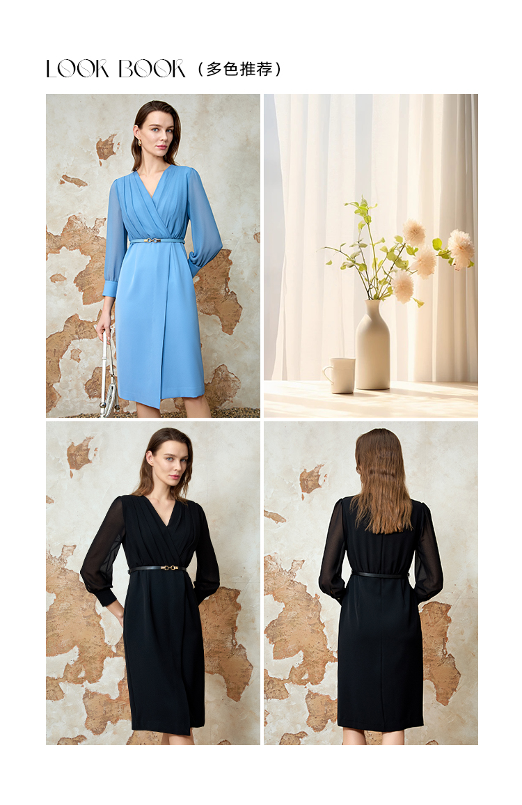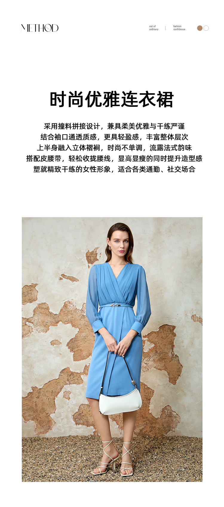 EITIE爱特爱气质优雅拼接修身显瘦连衣裙春新款8107816