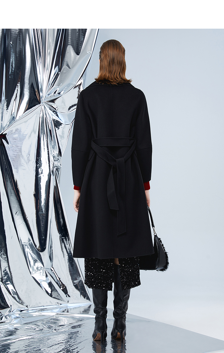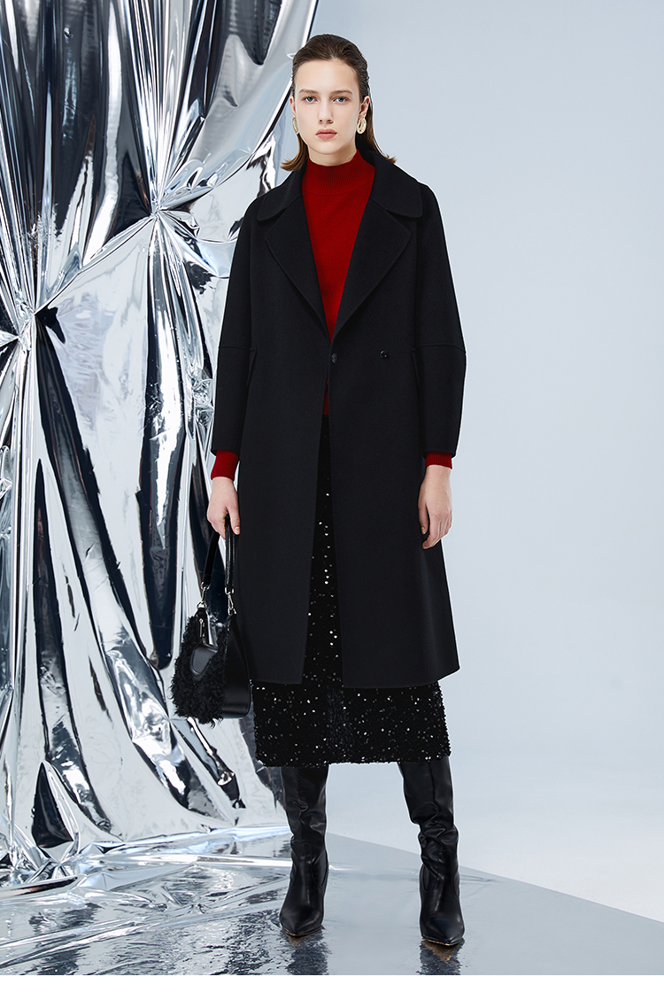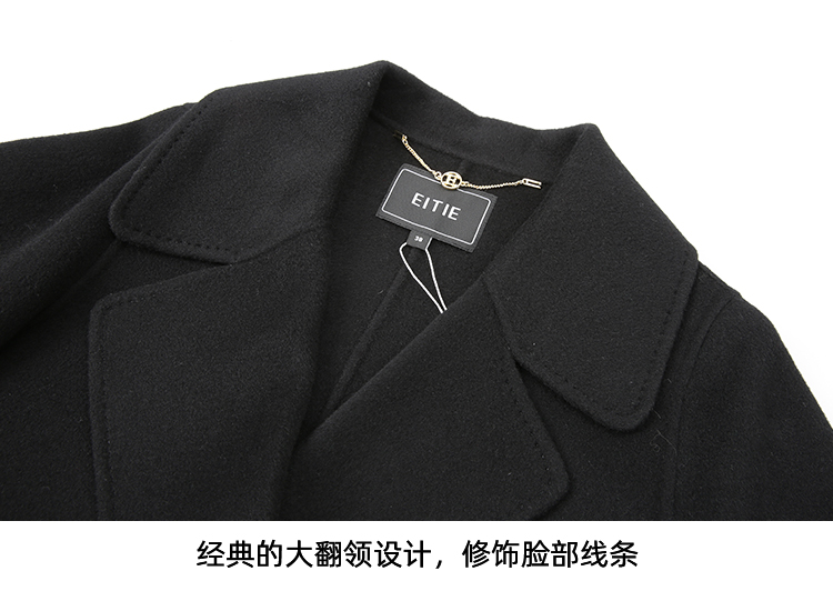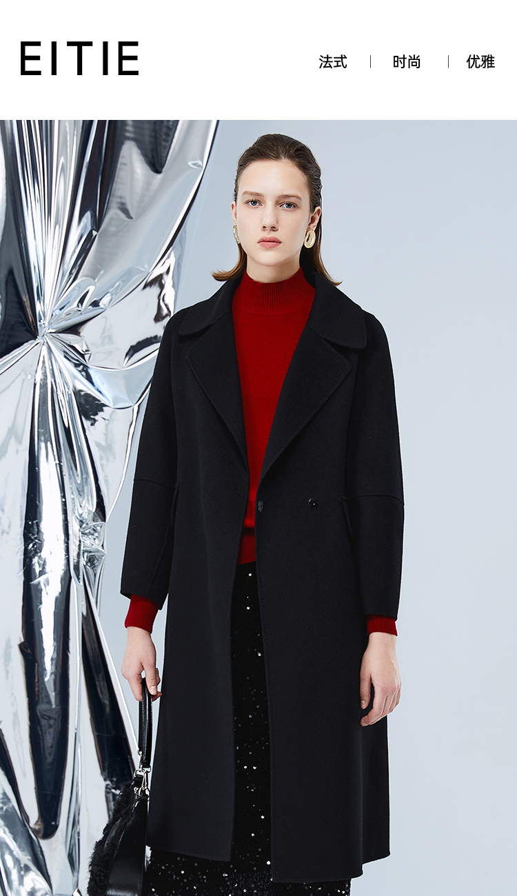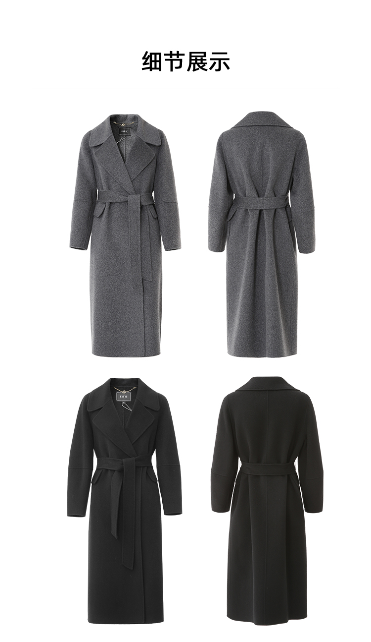 EITIE爱特爱冬季新款经典洋气宽松系带长款毛呢大衣外套7614306