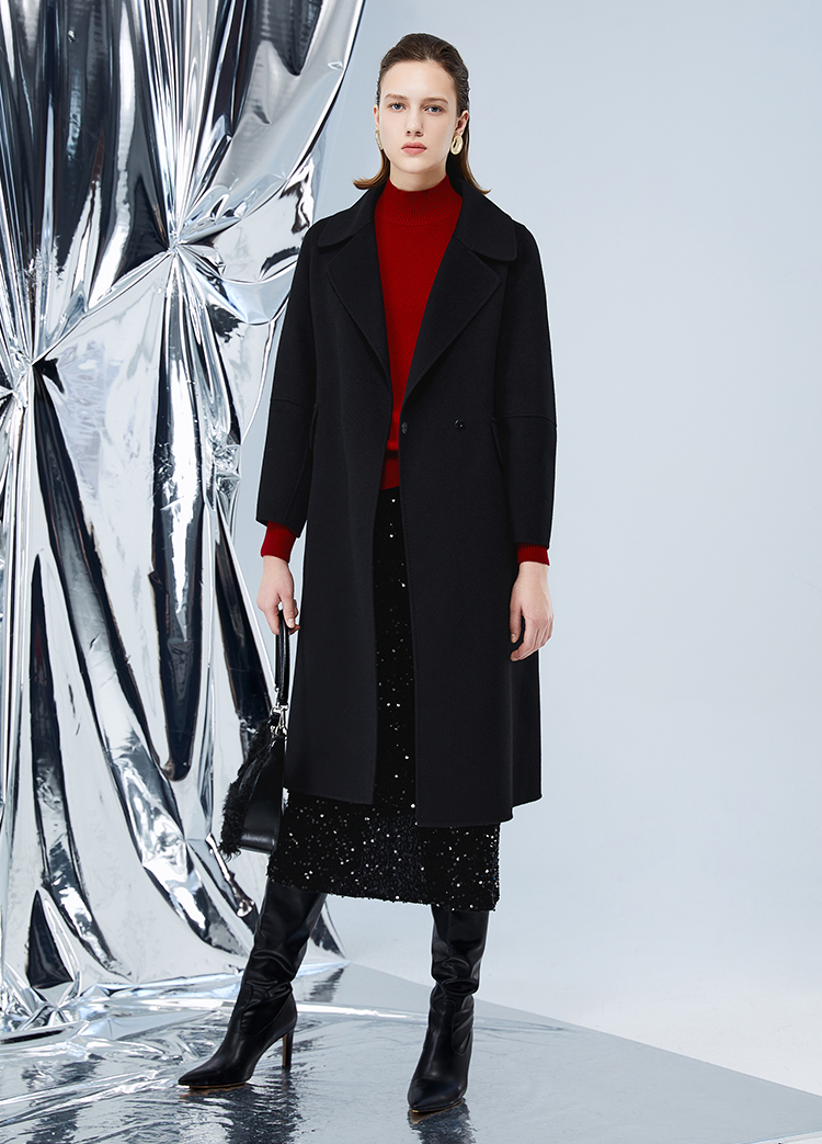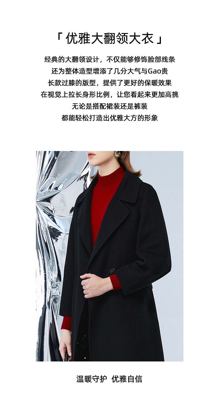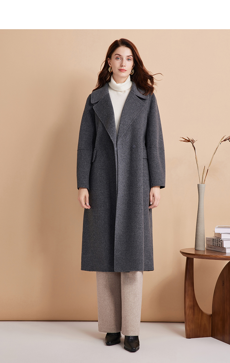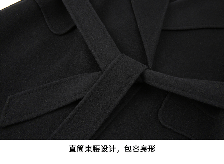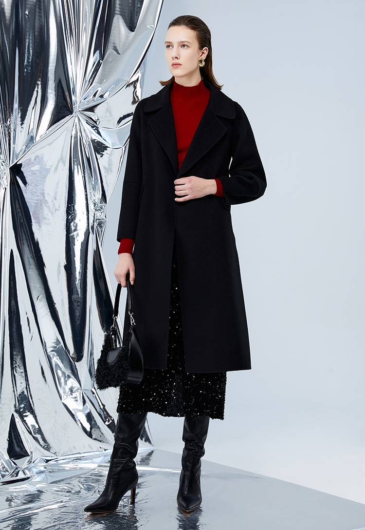 EITIE爱特爱冬季新款经典洋气宽松系带长款毛呢大衣外套7614306