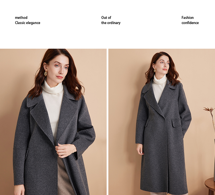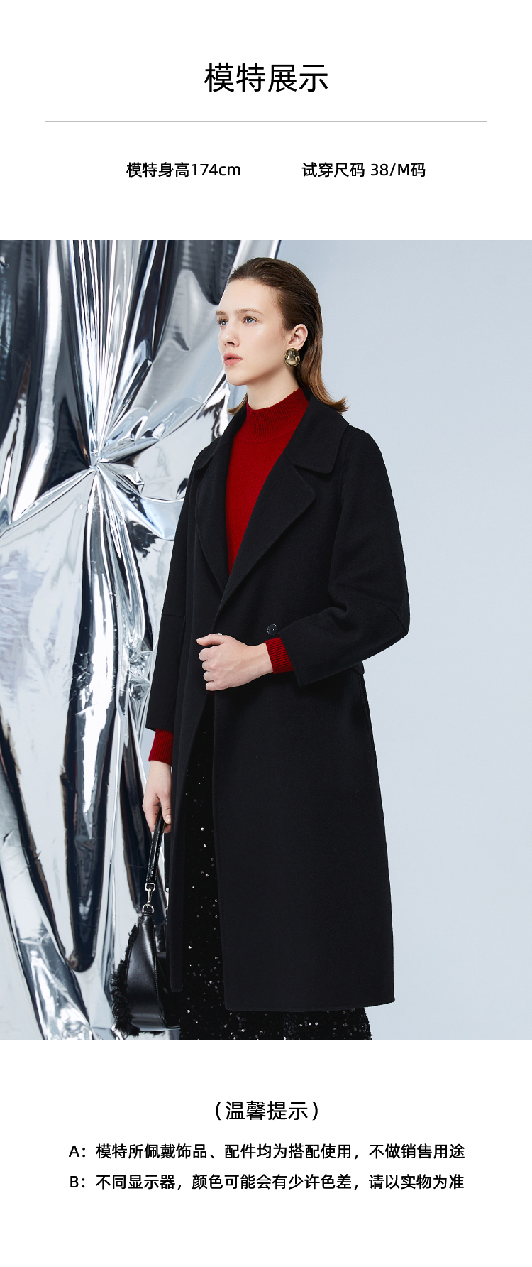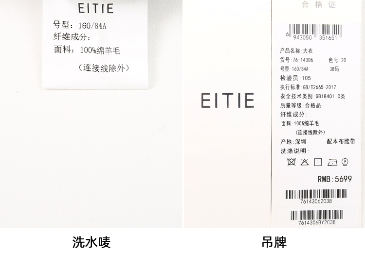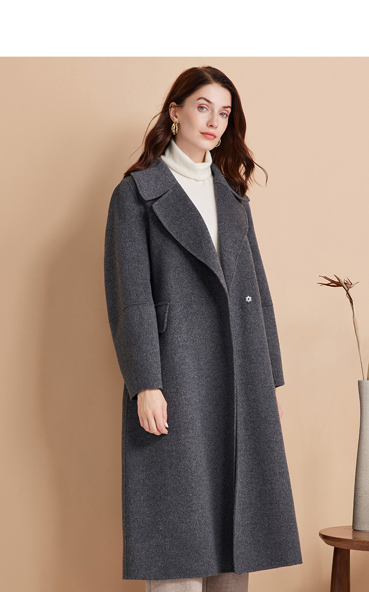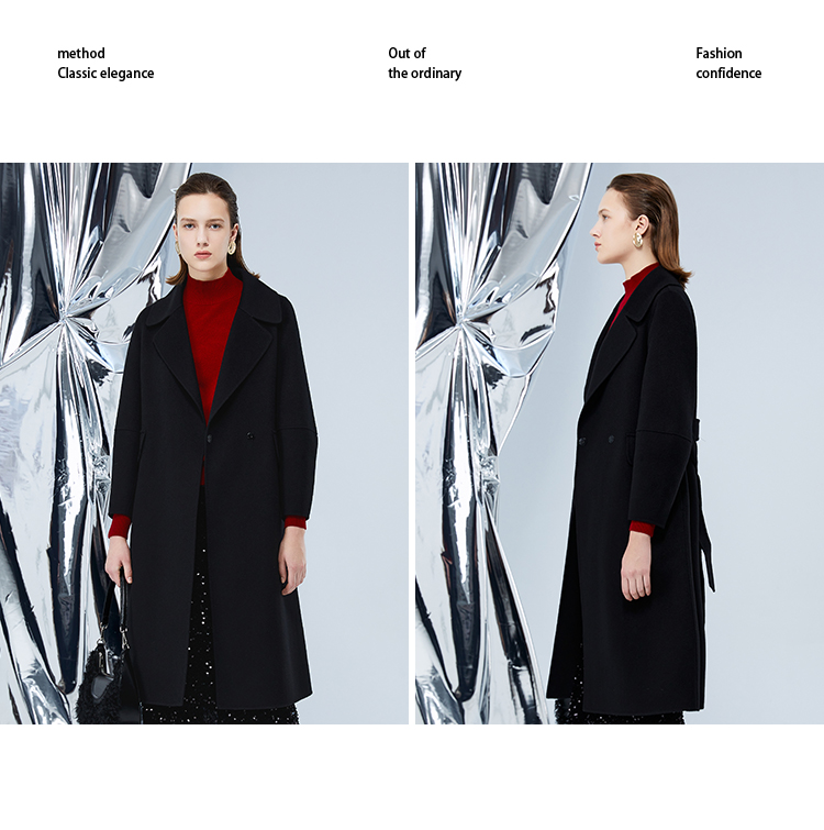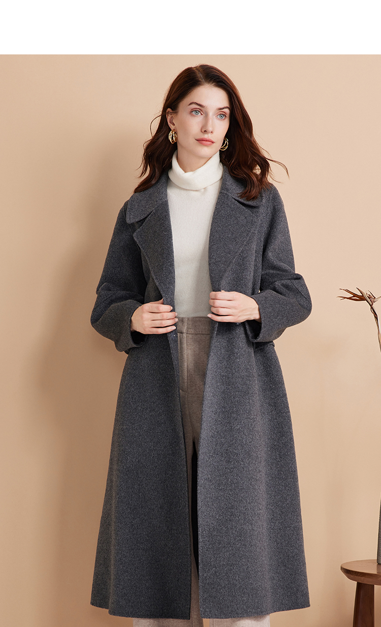 EITIE爱特爱冬季新款经典洋气宽松系带长款毛呢大衣外套7614306