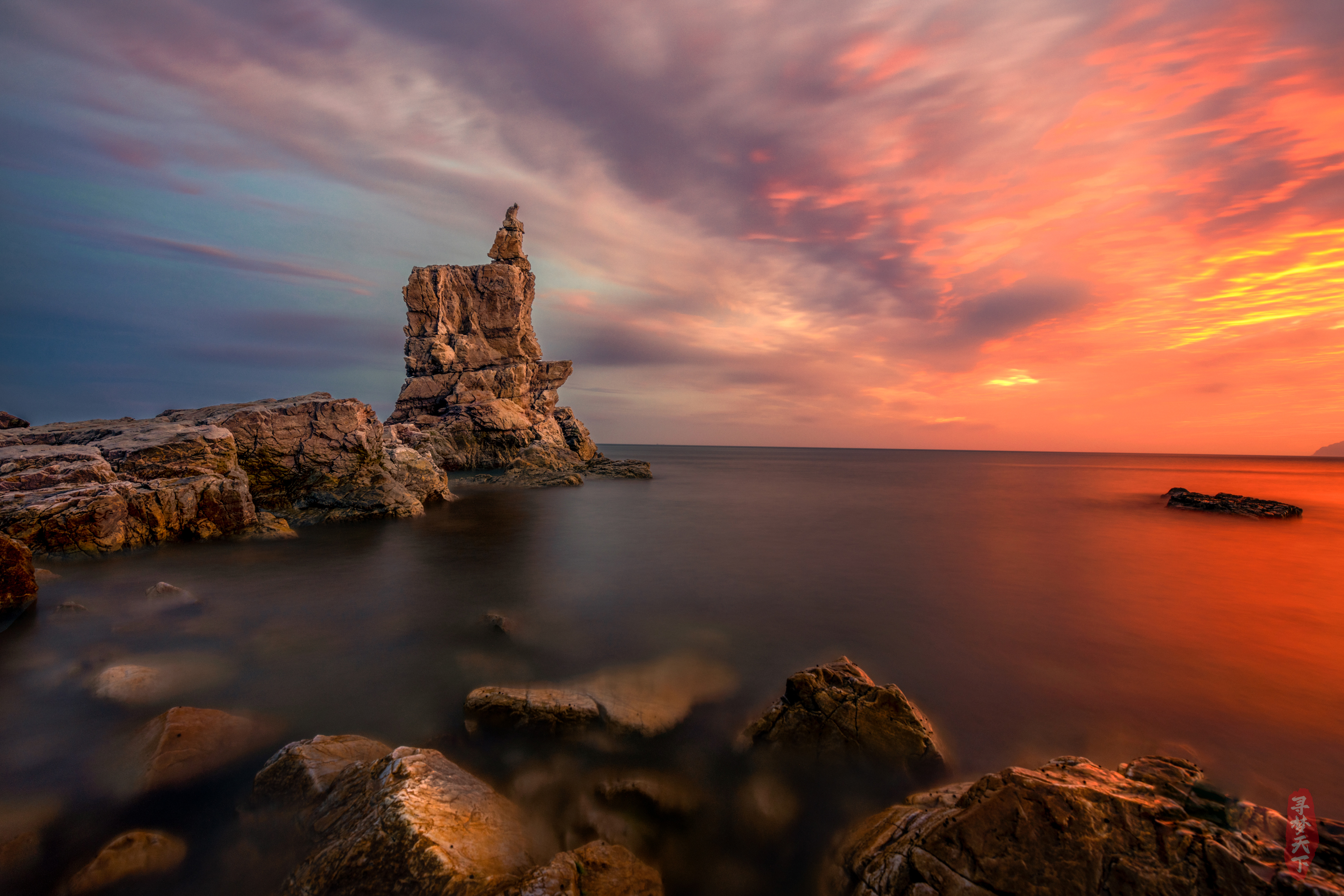 清晨闯入龙王塘樱花园,捕捉晨光中粉嫩樱花的灵动姿态;午后赴渤黄海交汇处,俯瞰两海 “泾渭分明” 的自然奇观;傍晚定格旅顺将军石在海浪与夕阳下的雄伟剪影。