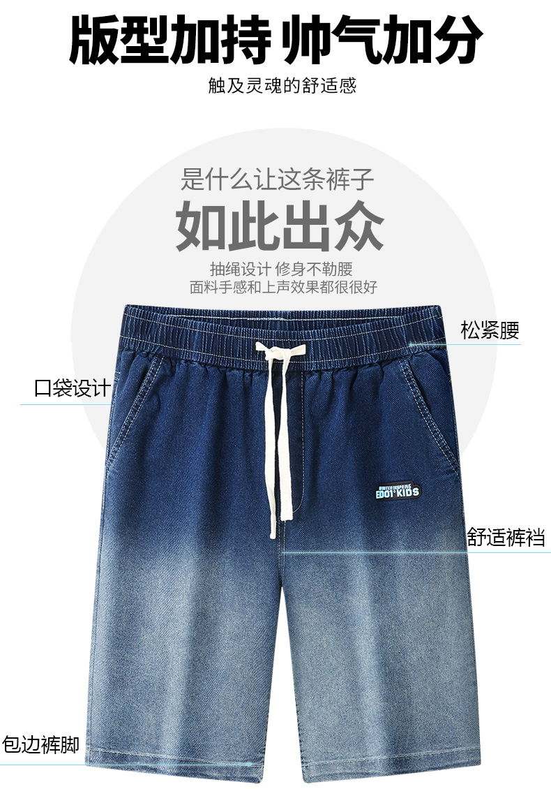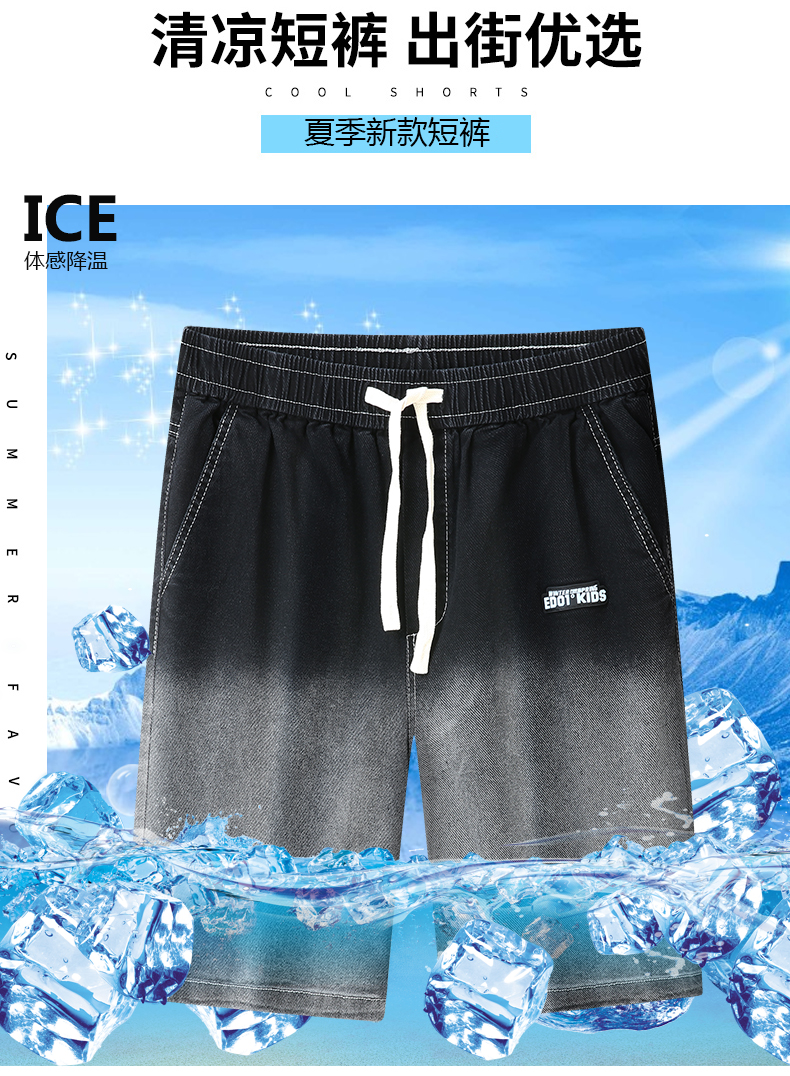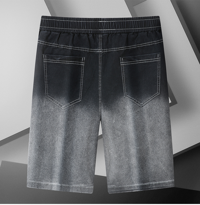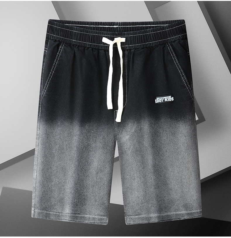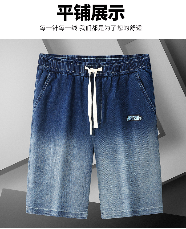 Q【新款DYF】大依优型牛仔渐变色五分裤大号裤子弹力透气加肥加大夏季松紧腰宽松沙滩裤