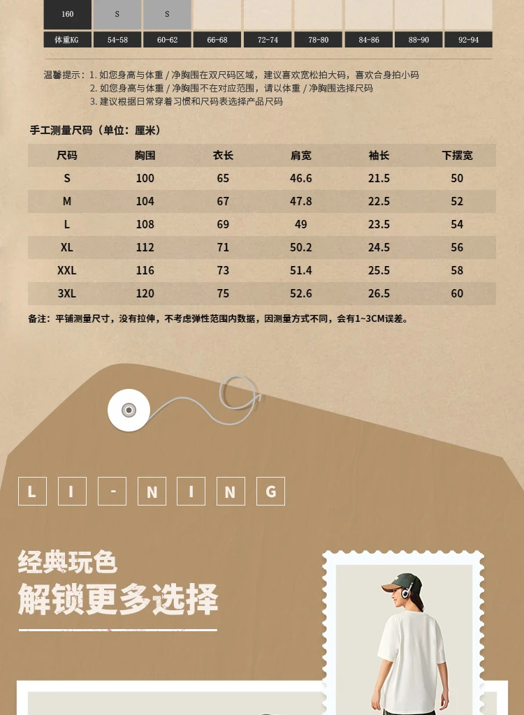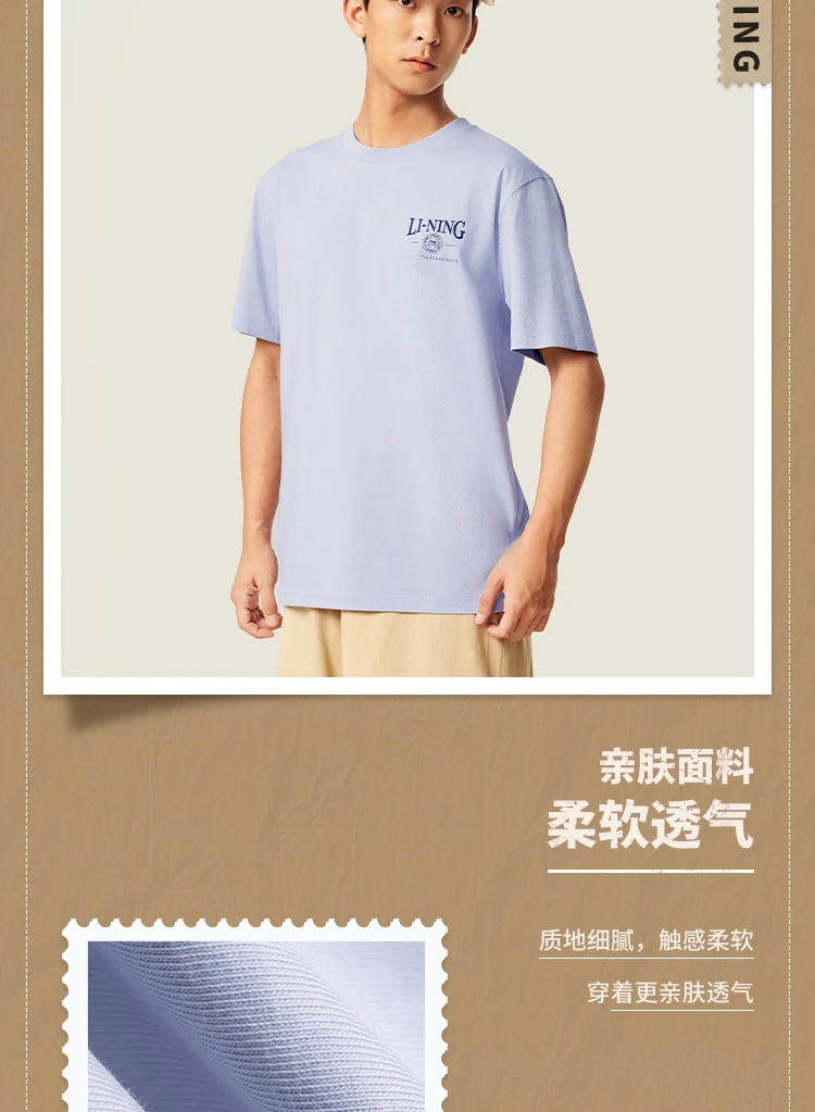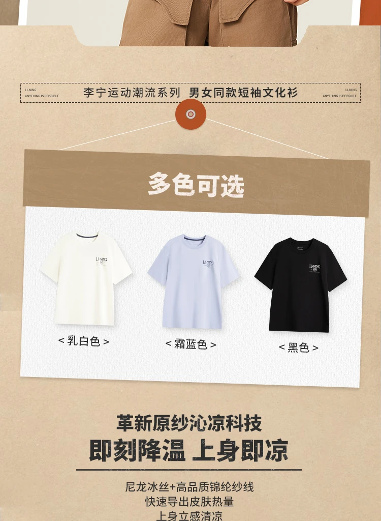 李宁运动潮流系列男子冰感舒适吸湿排汗短袖文化衫AHSV479