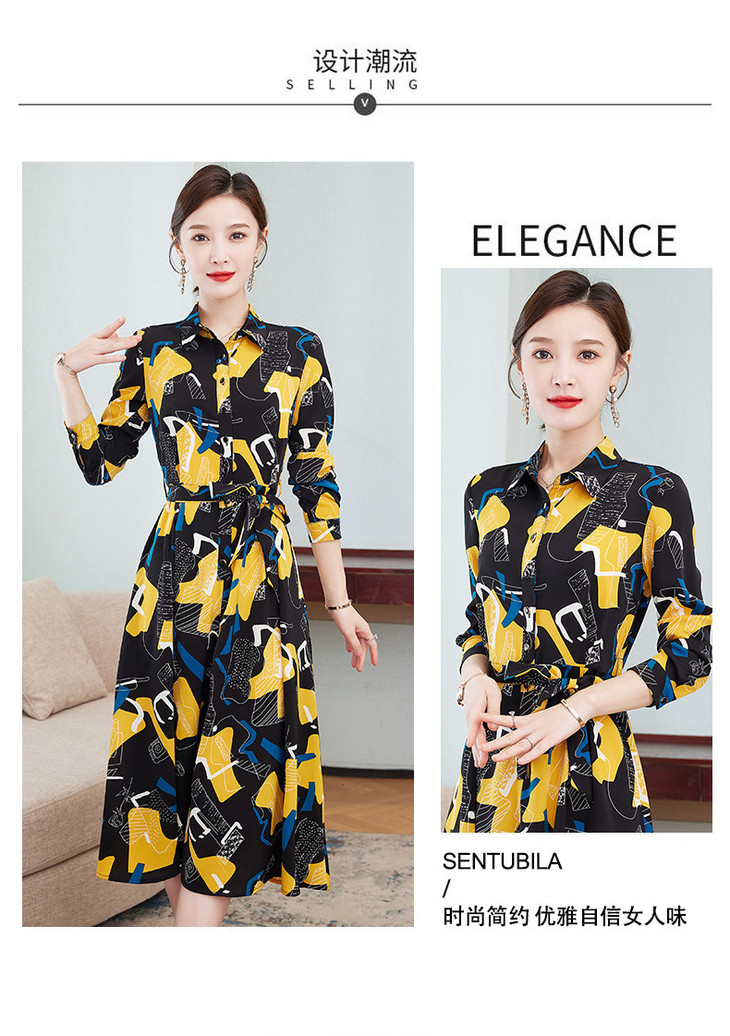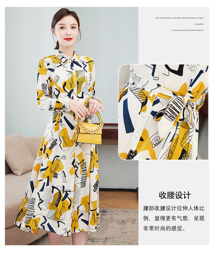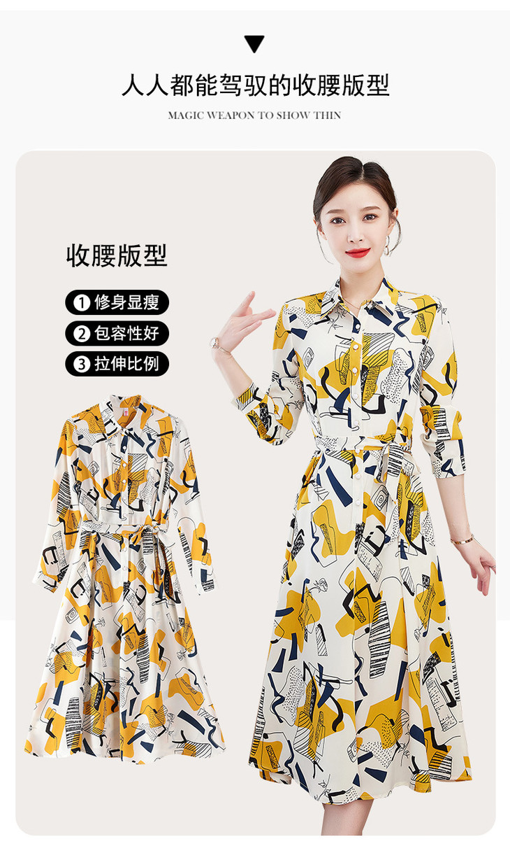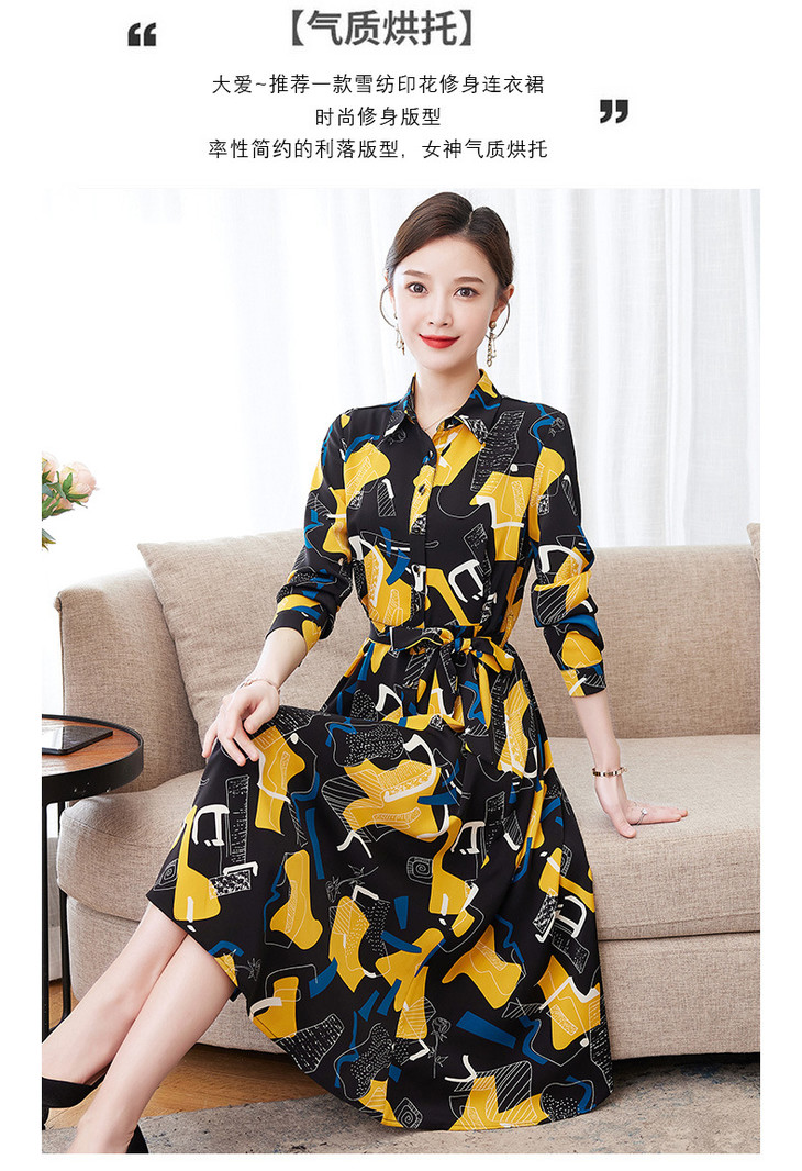 QB AZ5561雪纺碎花连衣裙显瘦遮肚气质大码