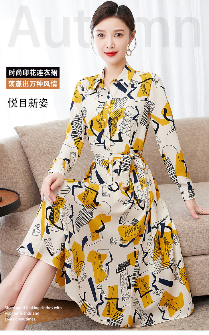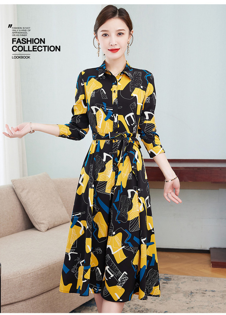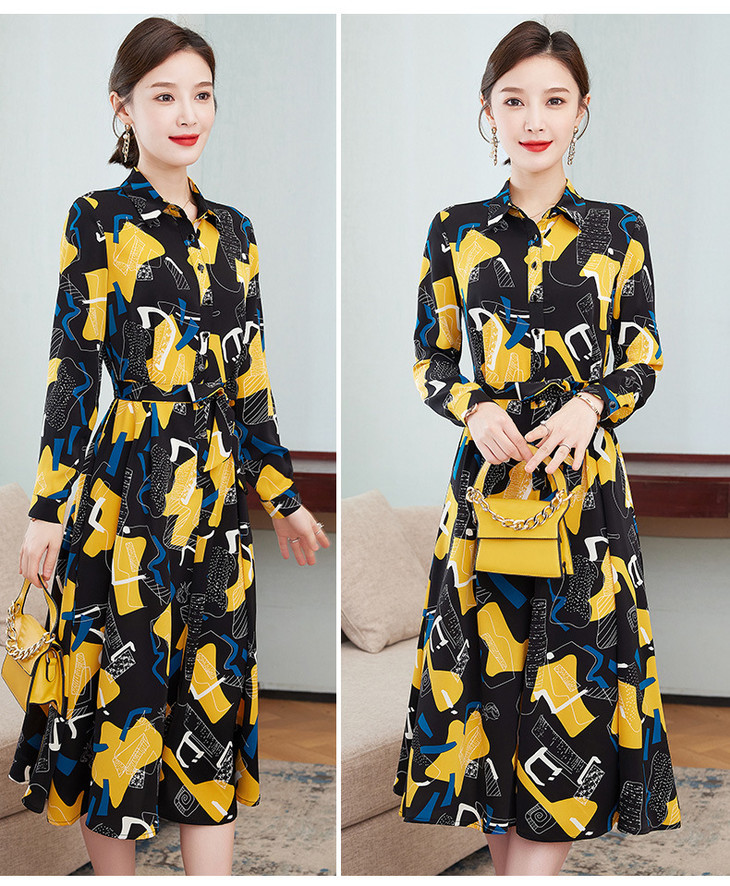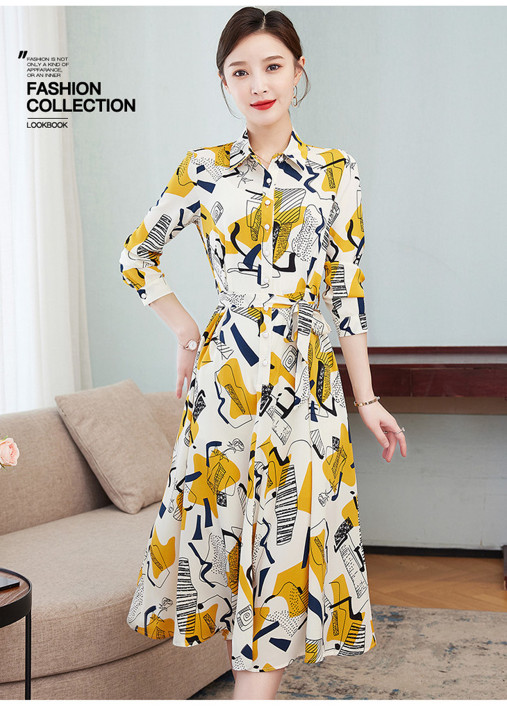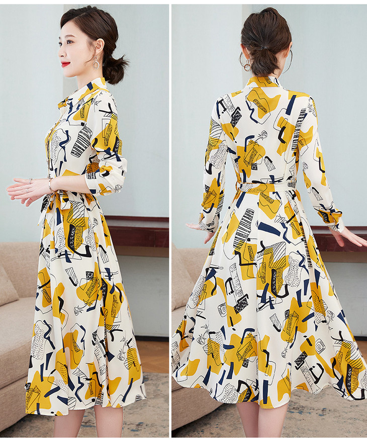 QB AZ5561雪纺碎花连衣裙显瘦遮肚气质大码