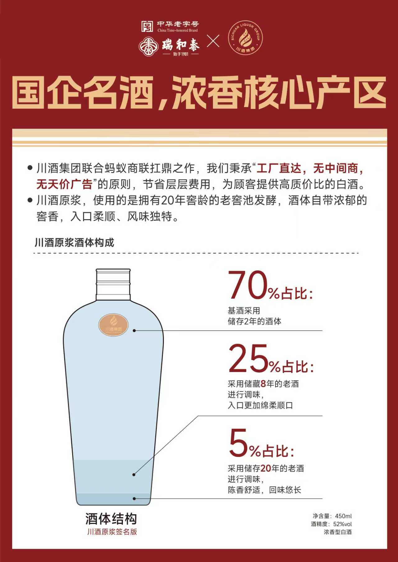 四川省川酒集团荣誉出品,国企背书,源自浓香型白酒核心产区。