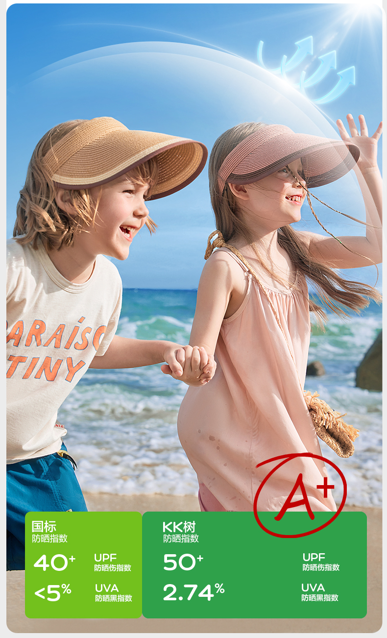 KK树儿童防晒草帽男童女孩防紫外线亲子空顶太阳帽宝宝户外遮阳帽星球轨迹亲子空顶帽
