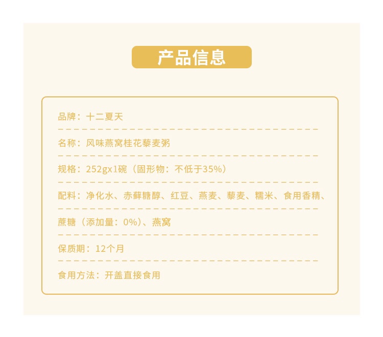 【送健康】252g*6十二夏天风味燕窝粥(牛奶黑米/桂花藜麦)