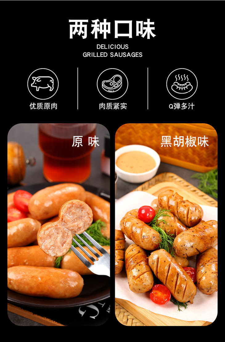 品名:爆汁黑猪肉烤肠 规格2:黑胡椒200g*4盒 规格3:200g*4盒(原味2+黑胡椒2) 规格4:原味200g*8盒 规格5:黑胡椒200g*8盒 规格6:200g*8盒(原味4+黑胡椒4) 注:200克/盒/4根 周六周天、节假日除外,早上十点之前的订单是48小时发货 ,到货时间约为2-5天,请您耐心等待 |