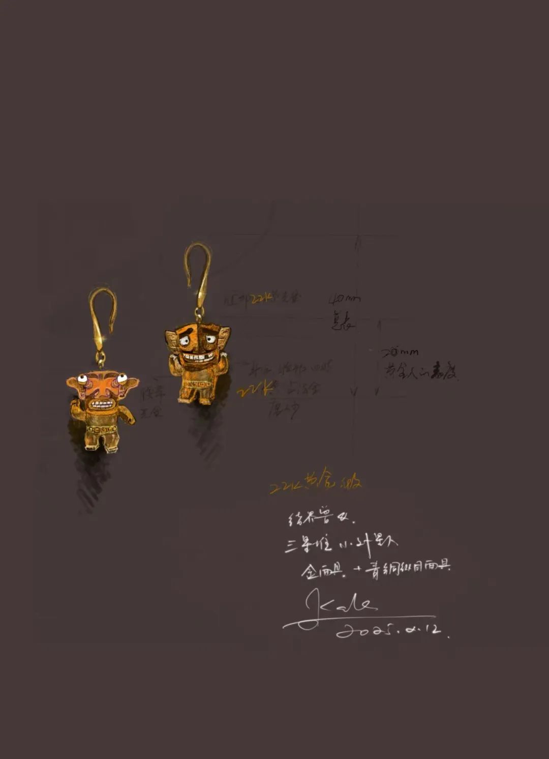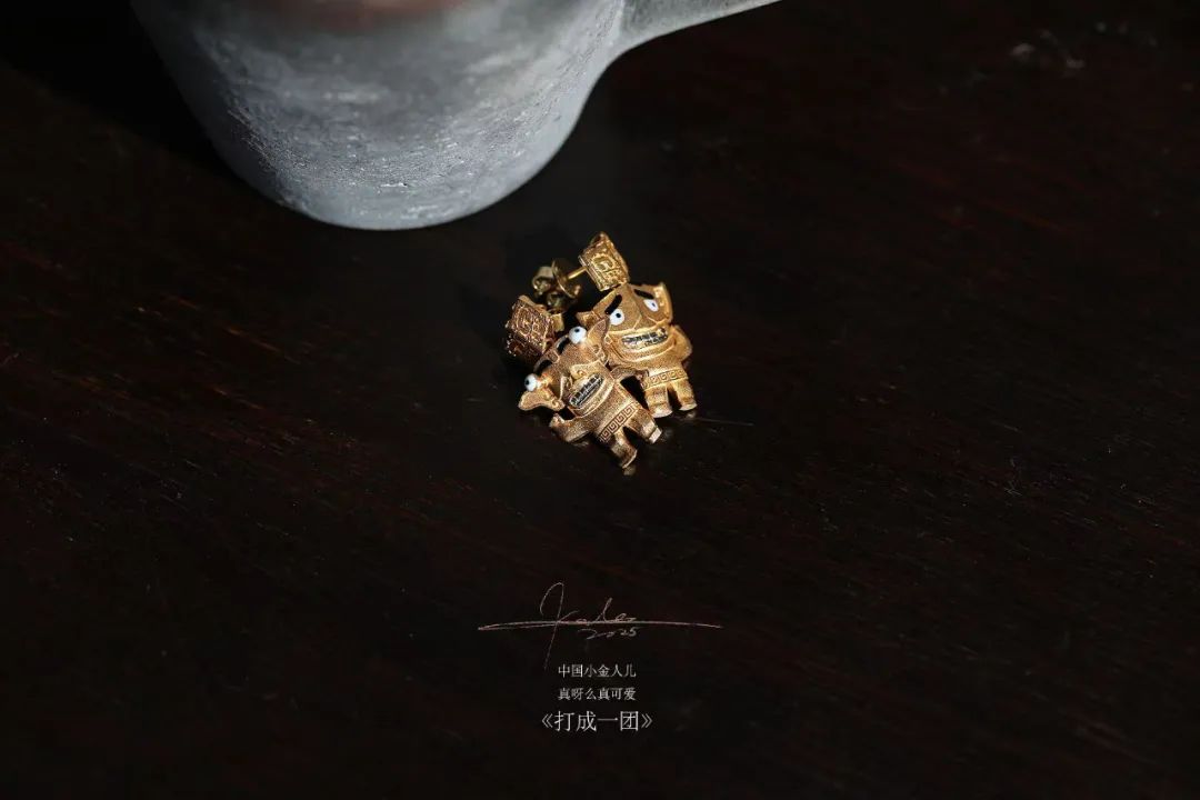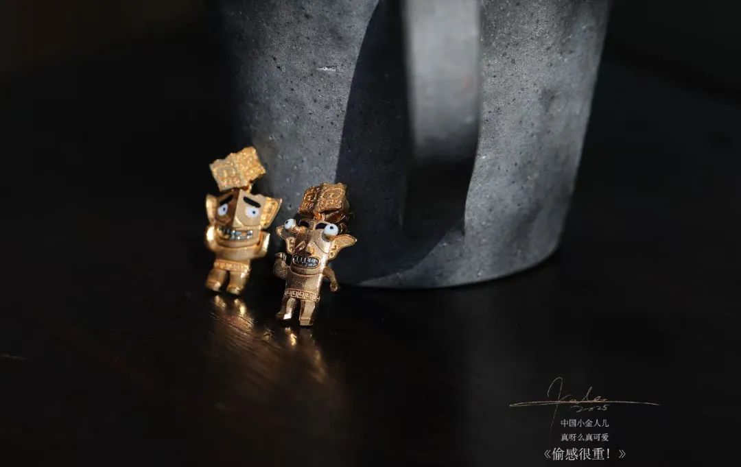 这两个三星堆小金人儿,22K金打造,是一对小损友。