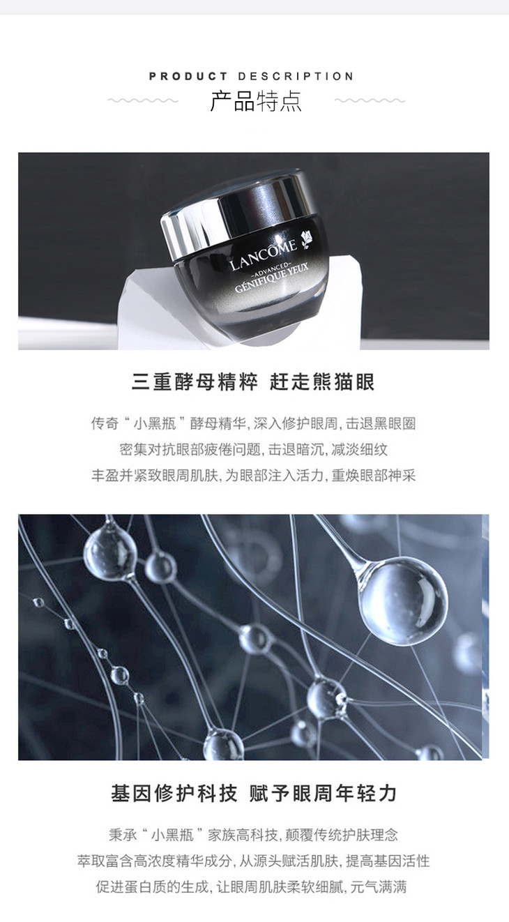 直邮 Lancome/兰蔻小黑瓶淡化细纹抗皱保湿肌底精华眼霜15ml*2
