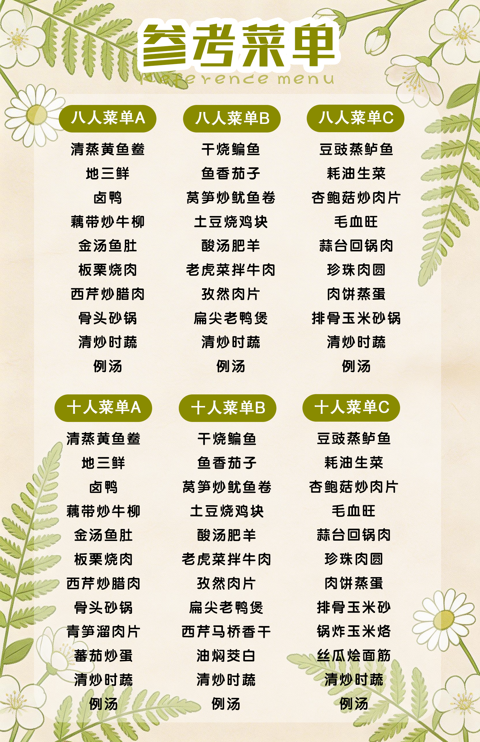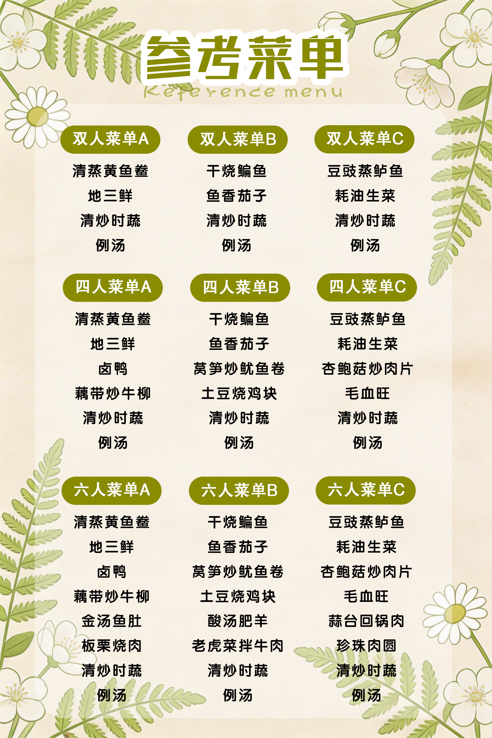 菜单仅供参考,因季节影响,部分菜品会进行同价调整