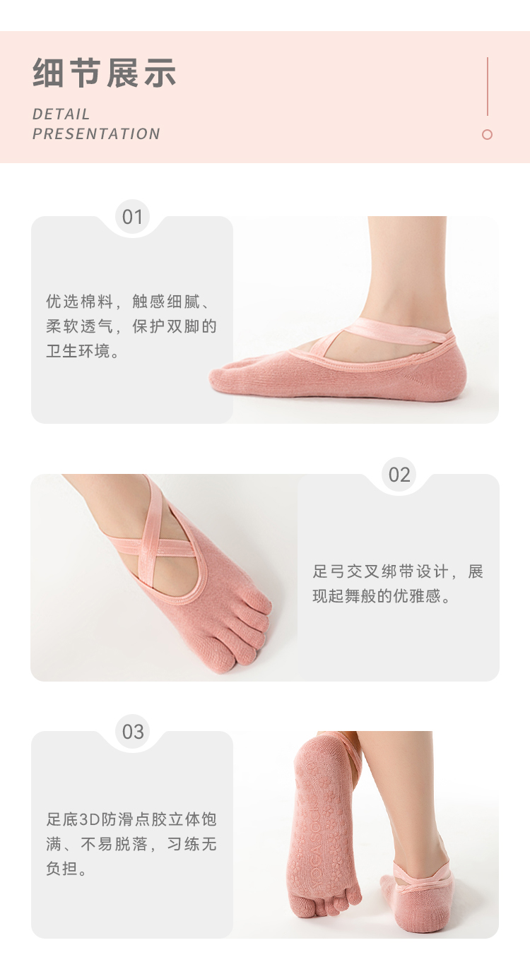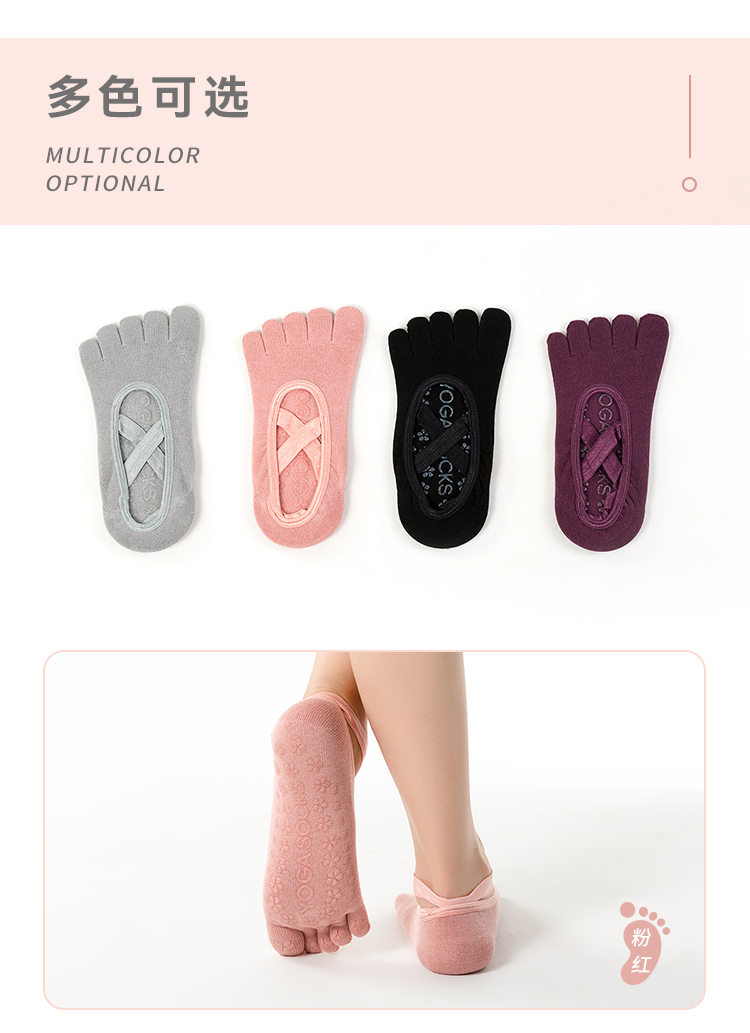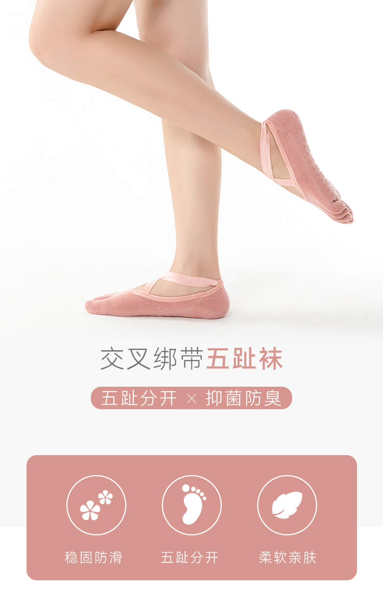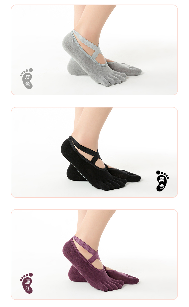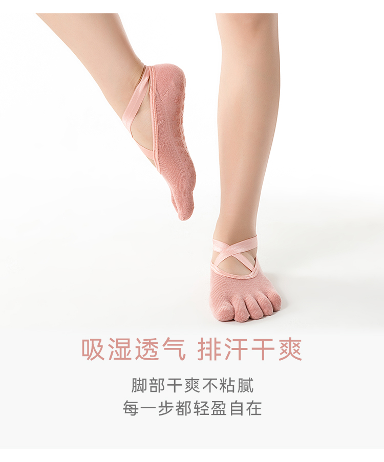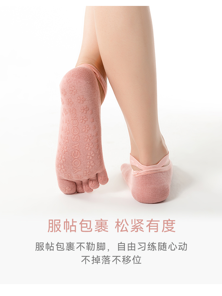 F1057交叉绑带五趾袜 瑜伽袜子 防滑袜 运动袜