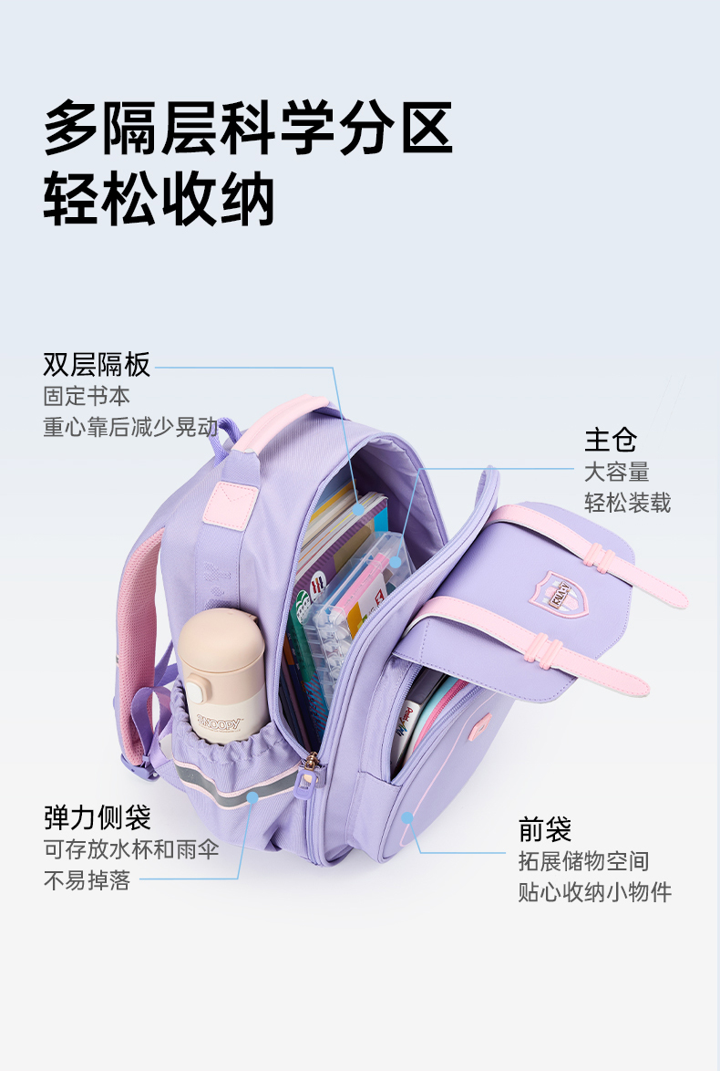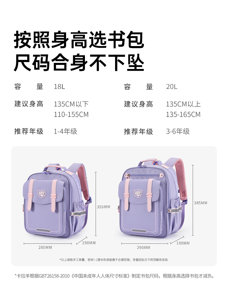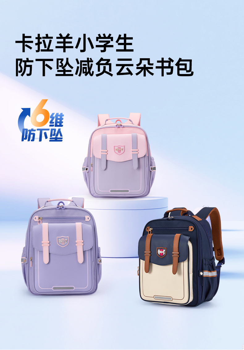 卡拉羊小学生1-6年级6维减负防下坠云朵书包诺丁汉系列CX2266+2501