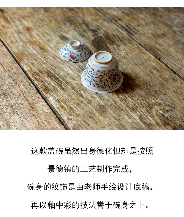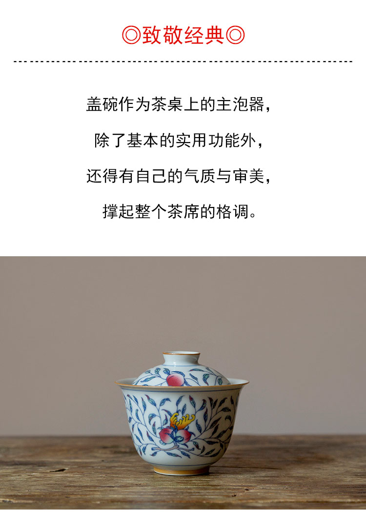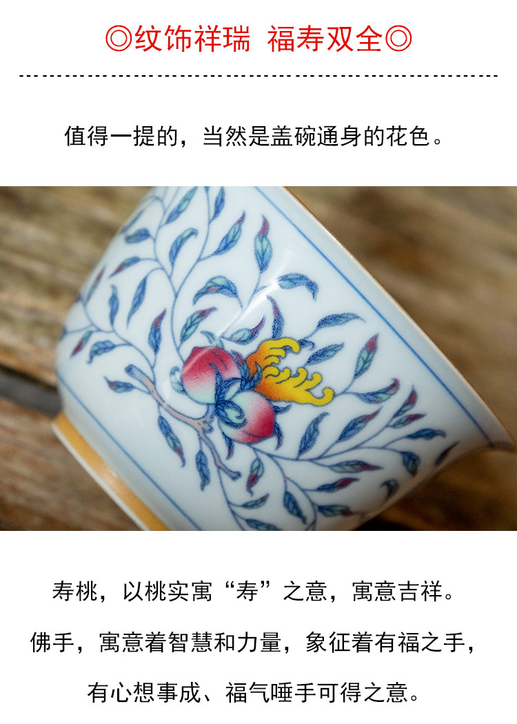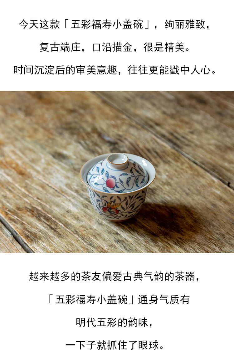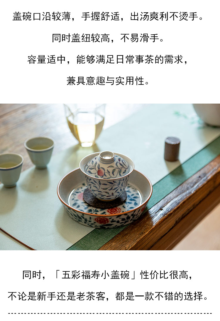 茶香记 五彩福寿小盖碗110ml清雅古典纹饰祥瑞陶瓷泡茶碗功夫茶具
