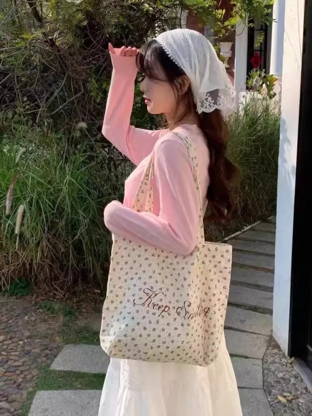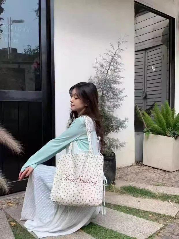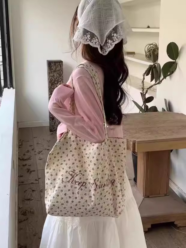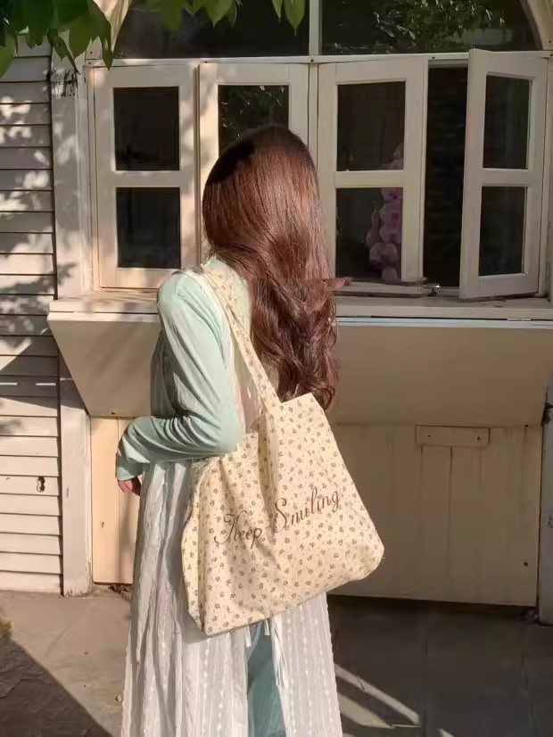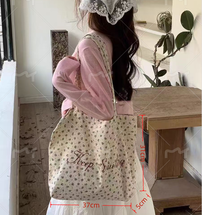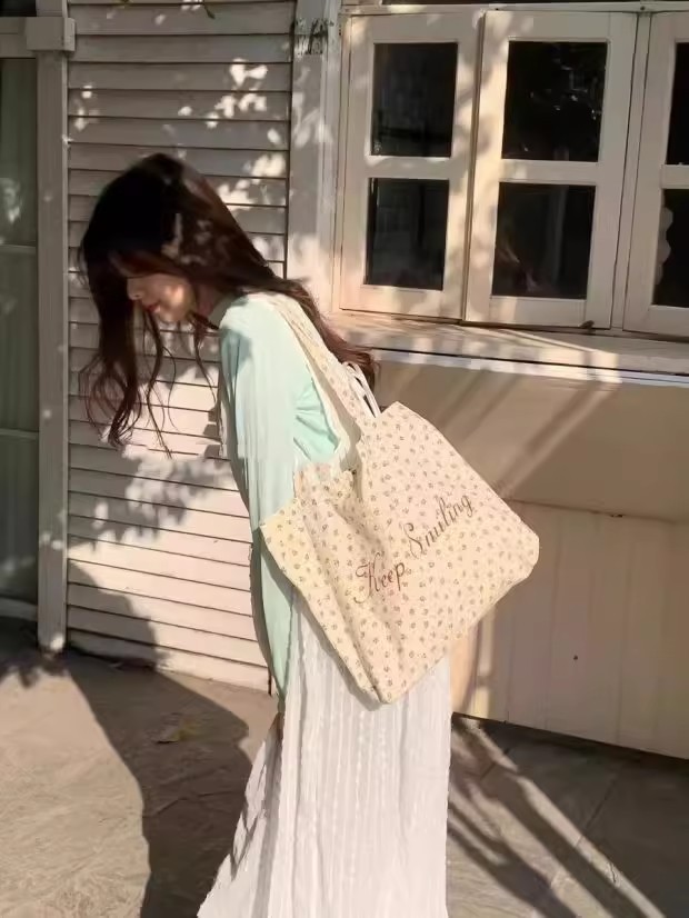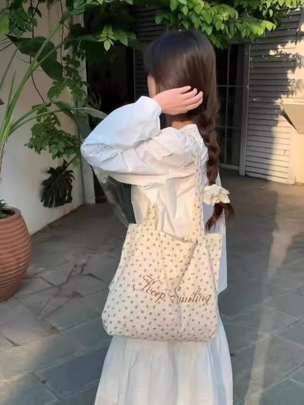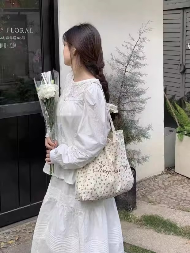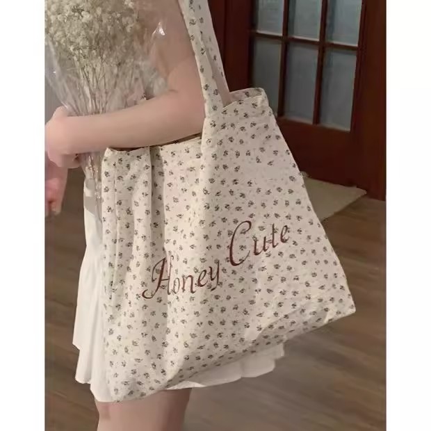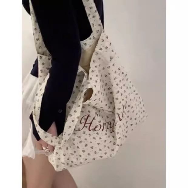 【法式少女风❗️】月光蓝碎花帆布包原创复古小众大学生字母大容量单肩包女。ya