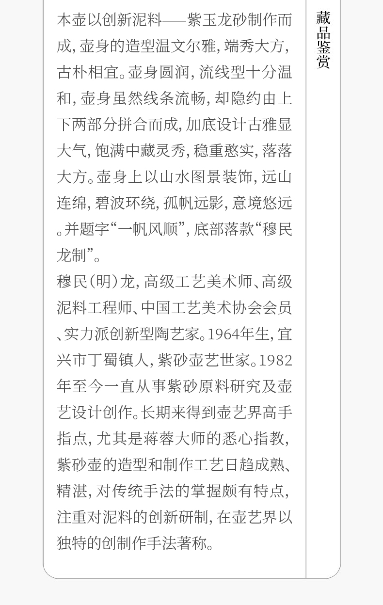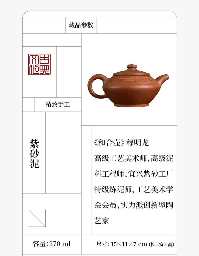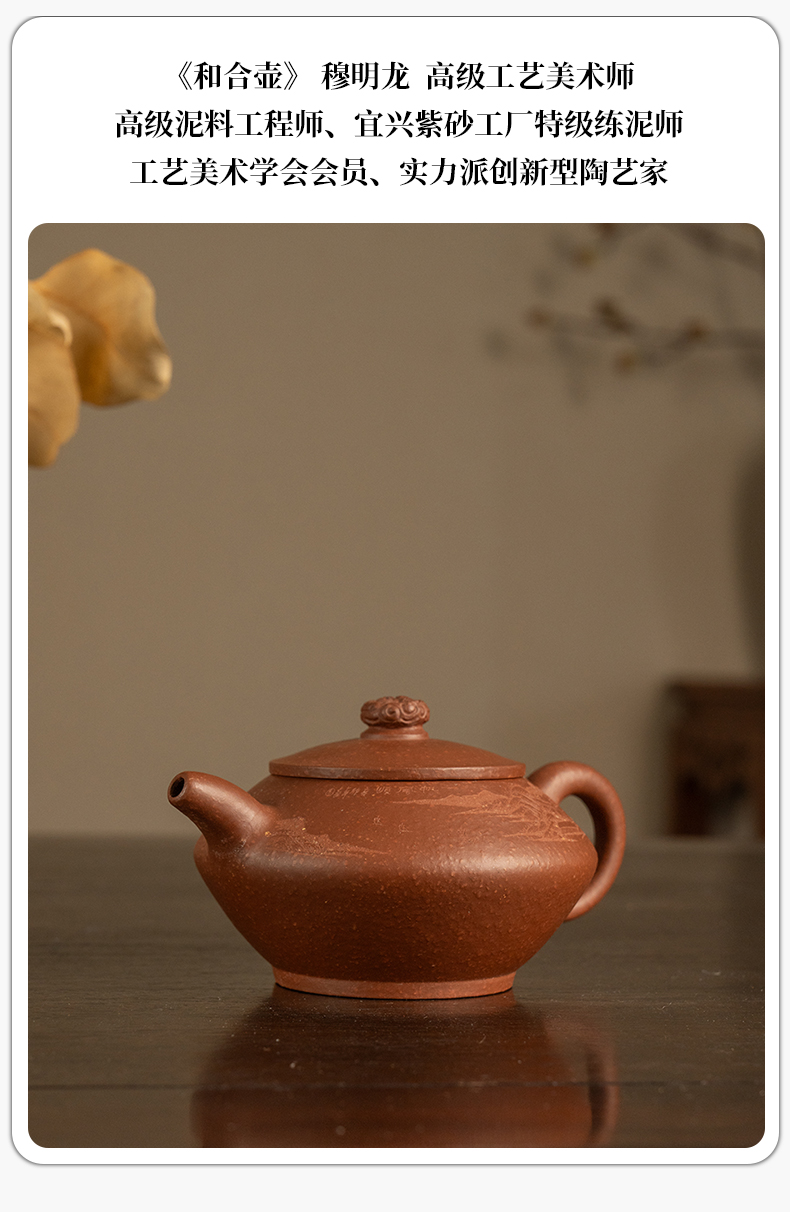 《和合壶》 穆明龙 高级工艺美术师、高级泥料工程师、宜兴紫砂工厂特级练泥师、工艺美术学会会员、实力派创新型陶艺家